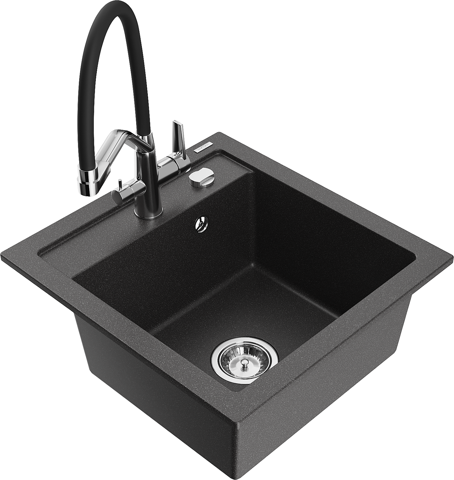 Mexen Vito évier en granit 1 bac avec mitigeur de cuisine Duo, noir moucheté - 6503-76-671701-07