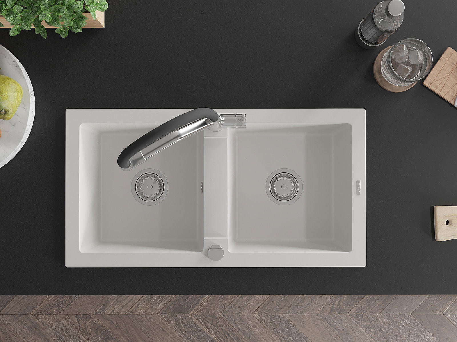 Mexen Mario évier en granit à 2 bacs avec robinet de cuisine Duo, blanc - 6504-20-671701-07