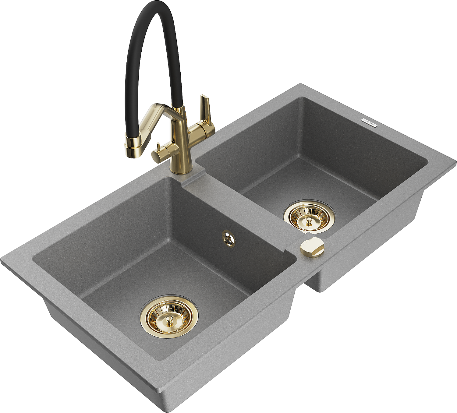 Mexen Mario évier de cuisine en granit 2 bacs avec robinet Duo, gris - 6504-71-671701-57-G