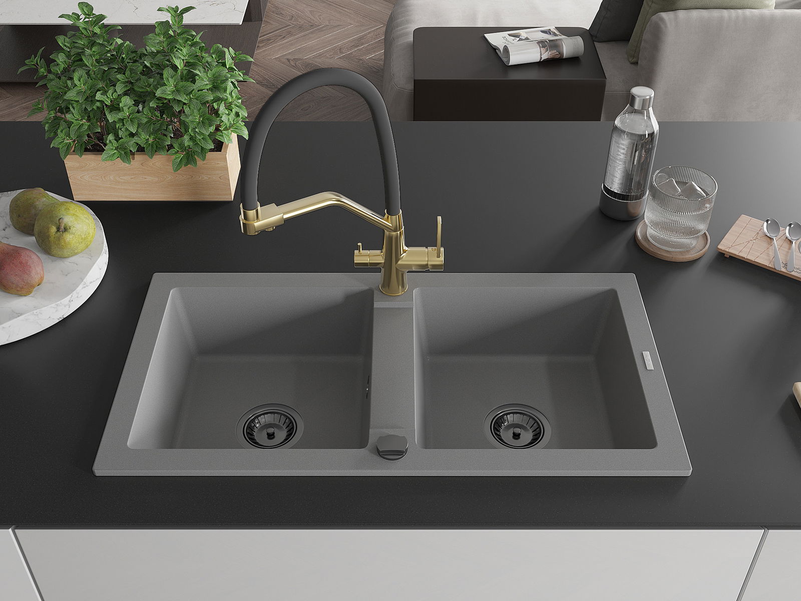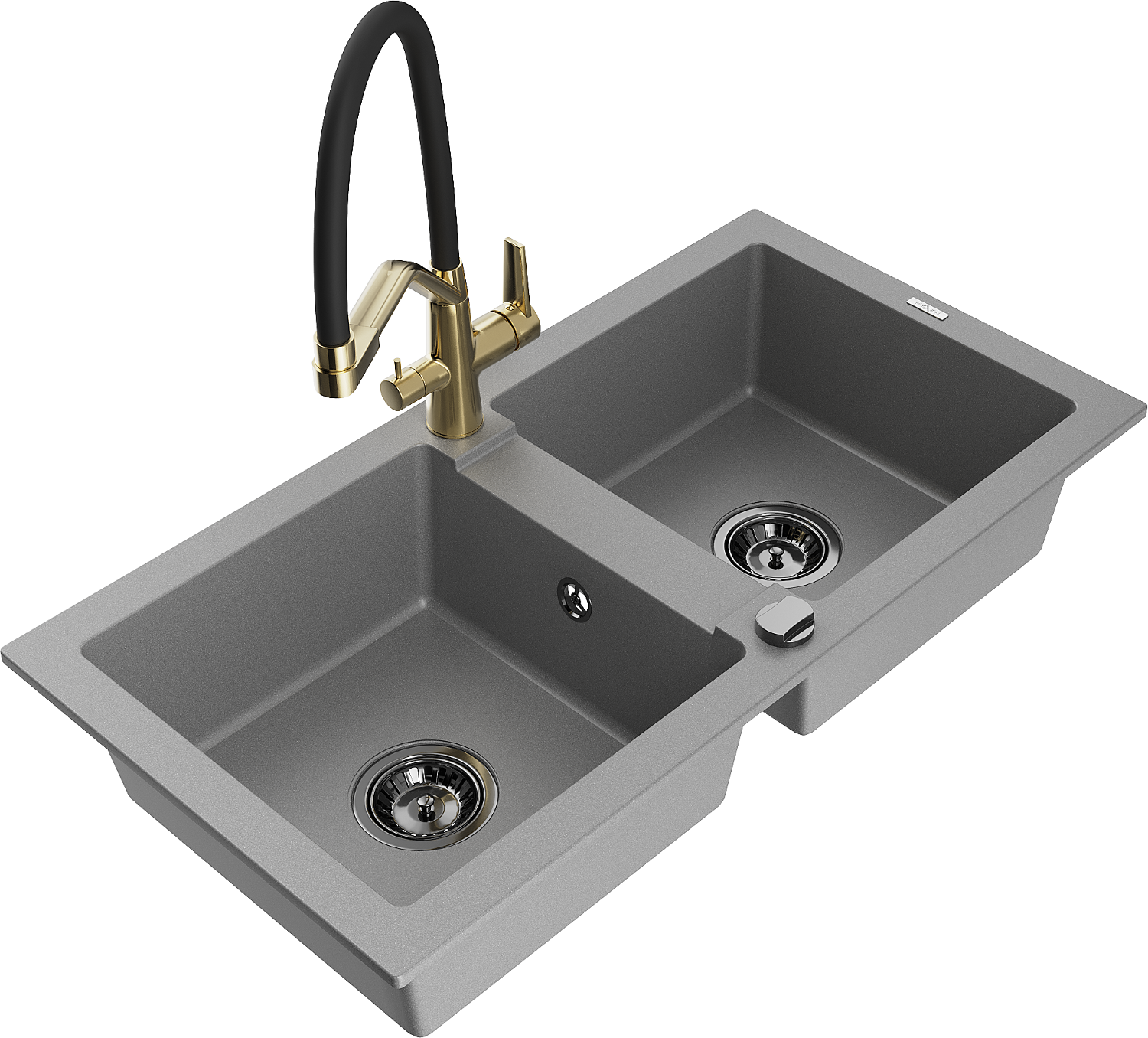 Mexen Mario évier en granit 2 bacs avec robinet de cuisine Duo, gris - 6504-71-671701-57-B