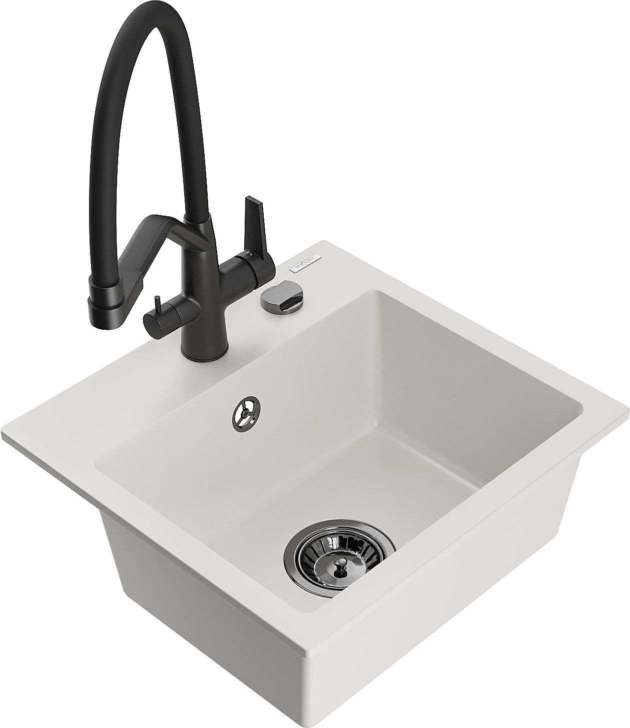 Mexen Milo évier de cuisine en granit 1 bac avec robinetterie Duo, blanc - 6505-20-671701-70-B