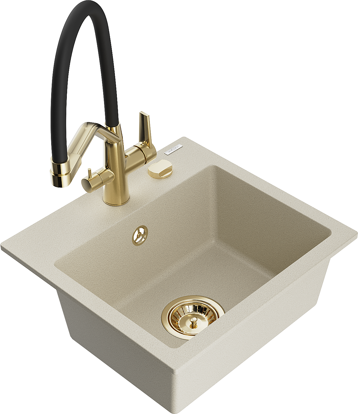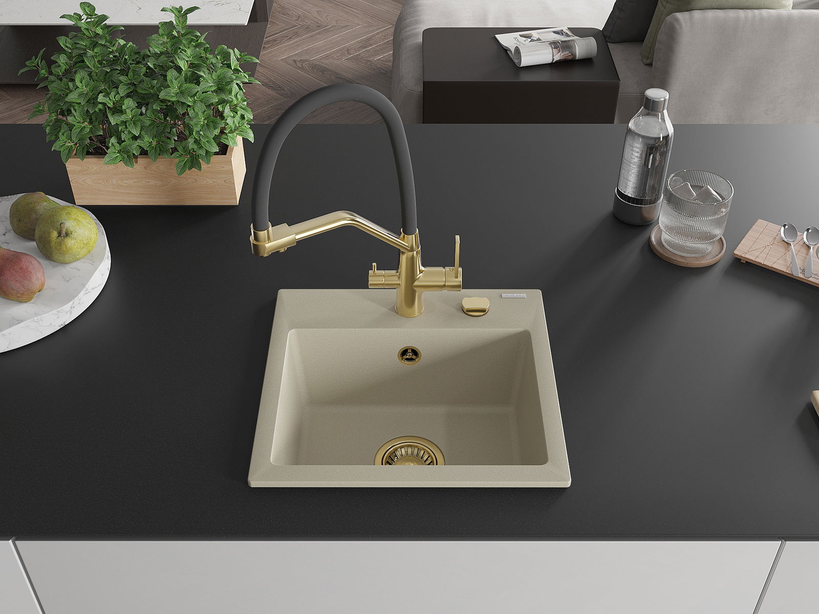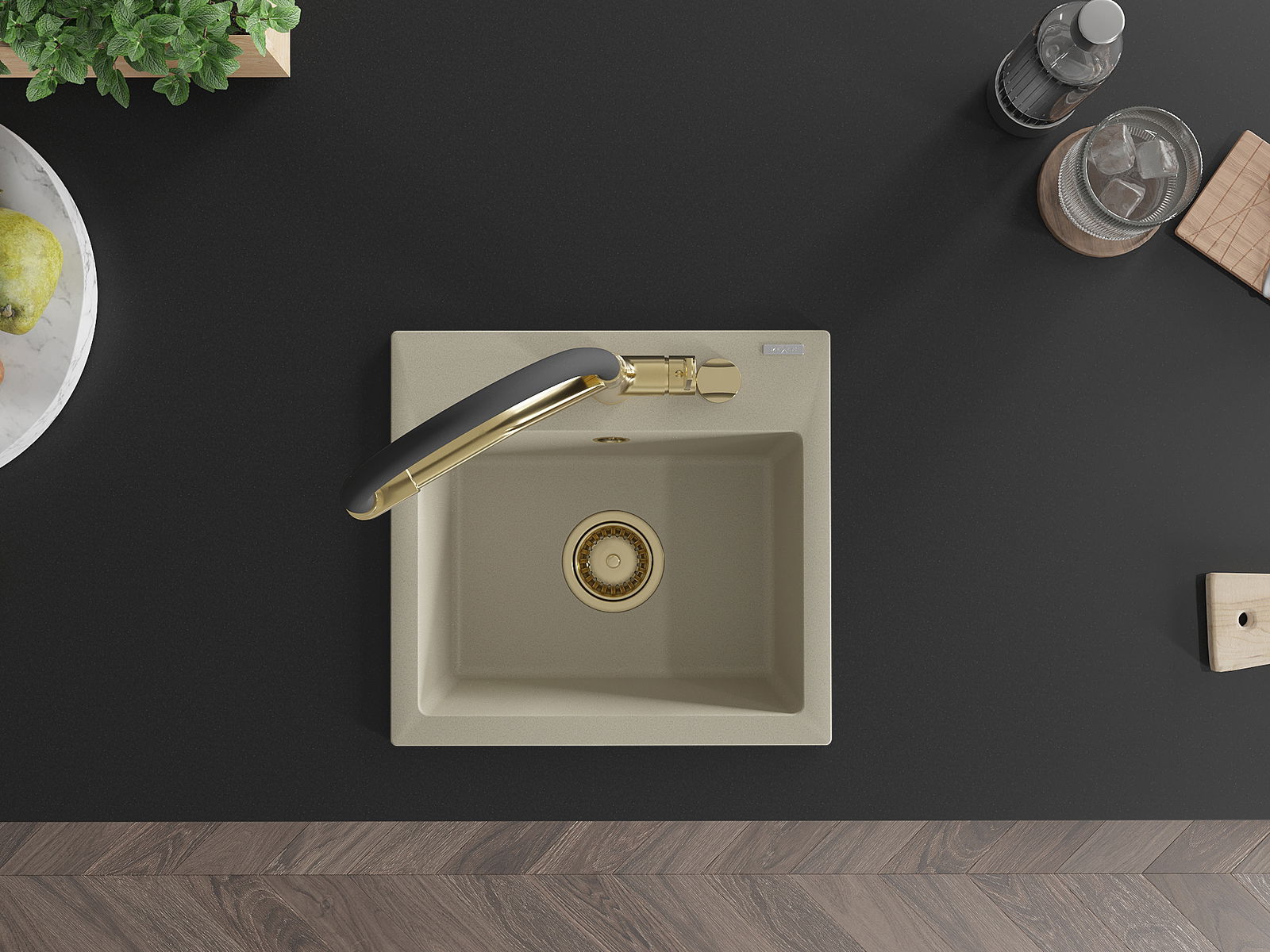 Mexen Milo évier en granit à 1 bac avec robinet de cuisine Duo, beige - 6505-69-671701-57-G