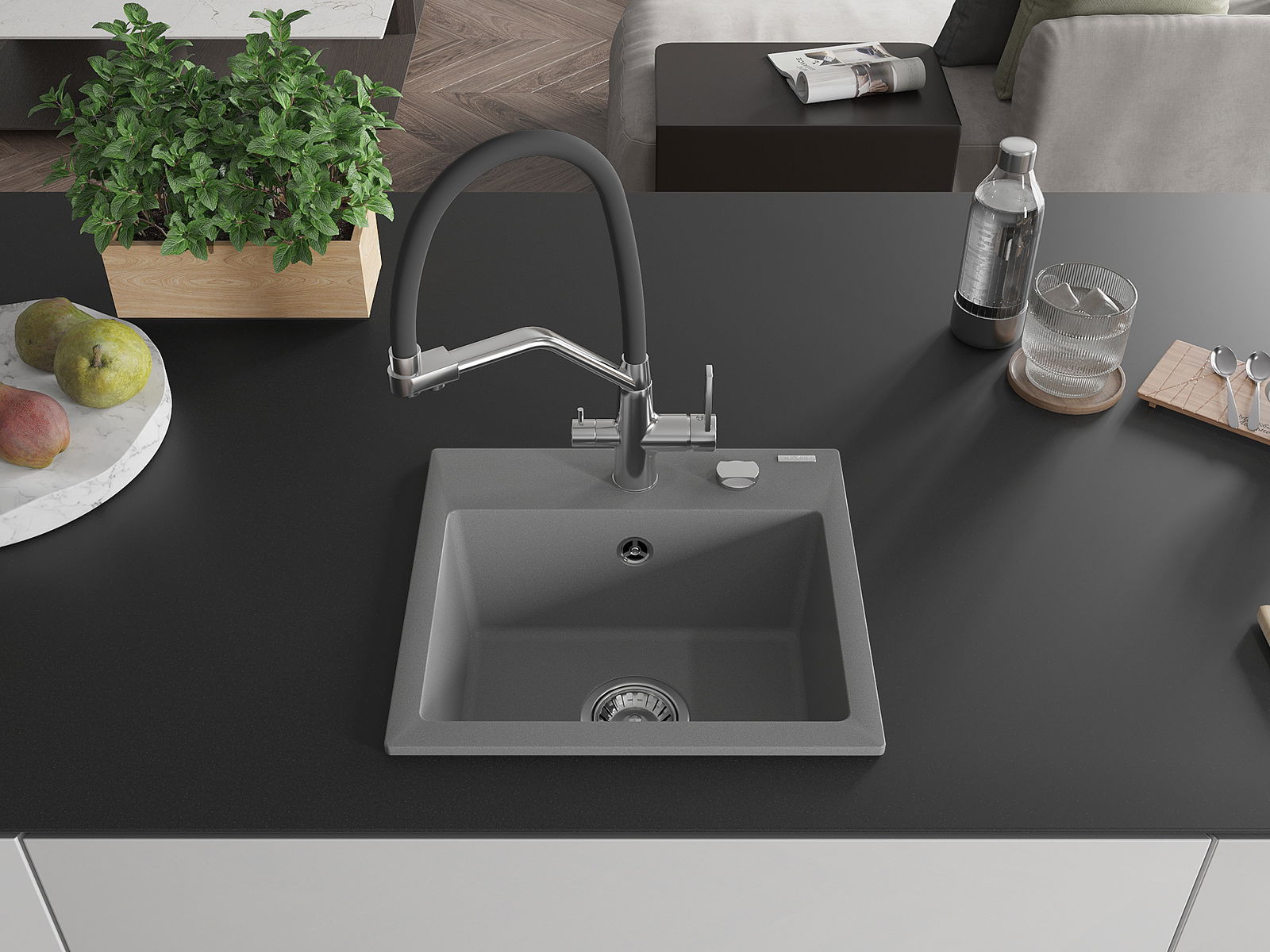 L'évier a été fabriqué en granit de haute qualité. Il constitue un complément élégant et surtout pratique à toute cuisine, quel que soit son style. La haute qualité et la durabilité du granit garantissent une utilisation pendant de nombreuses années.