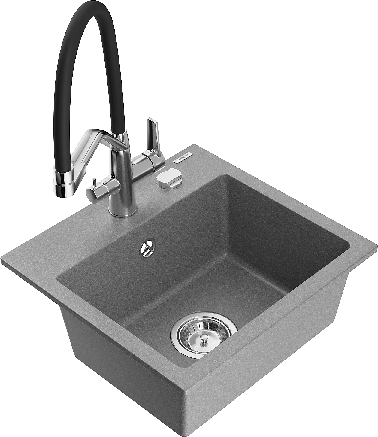 Mexen Milo évier de cuisine en granit 1 bac avec robinet de cuisine Duo, gris - 6505-71-671701-07