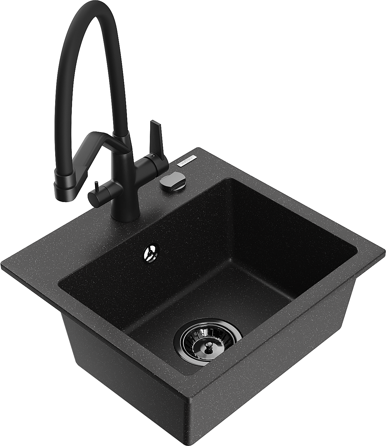 Mexen Milo évier en granit 1 bac avec robinet de cuisine Duo, noir/argent métallisé - 6505-73-671701-70-B