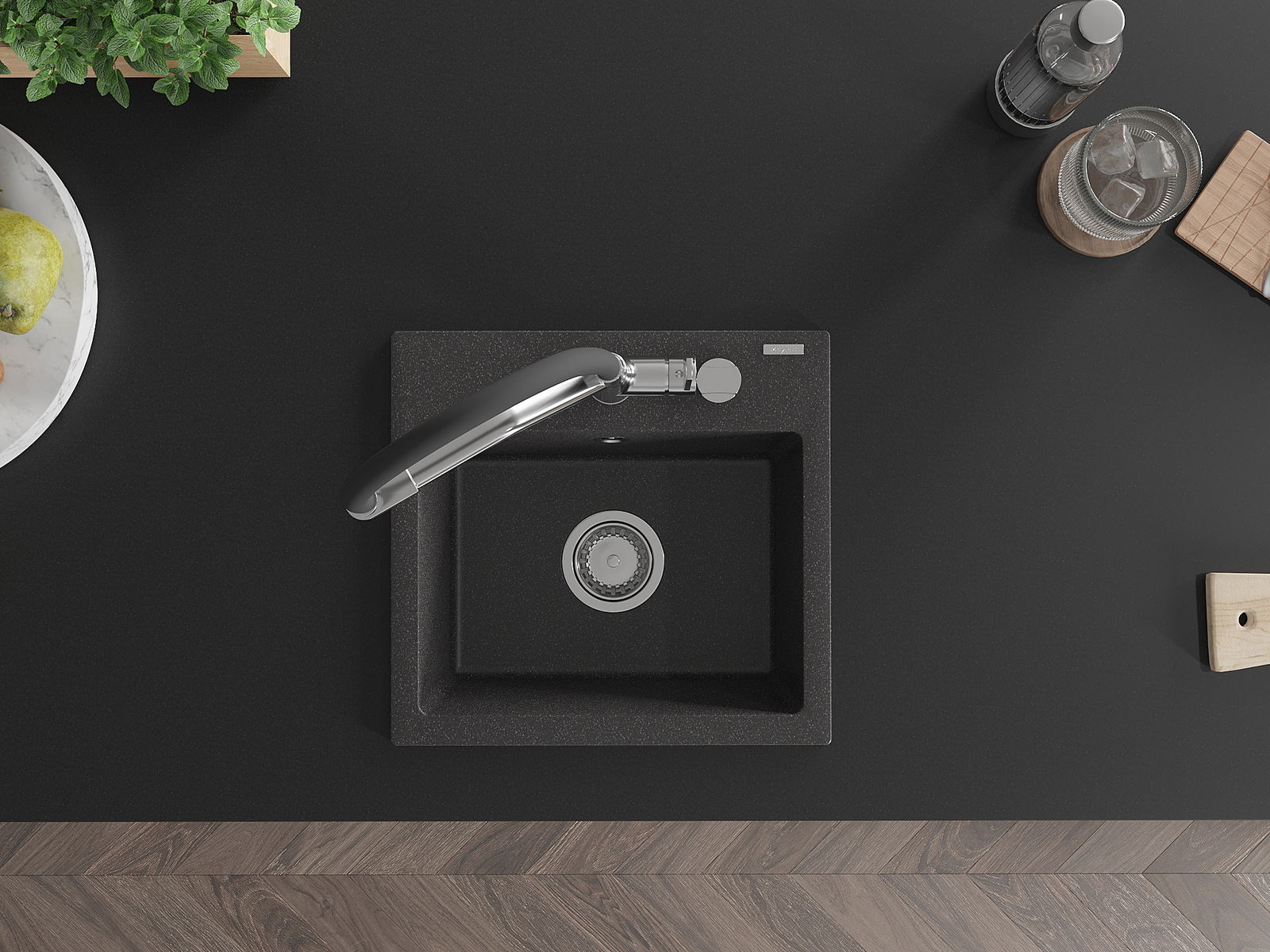 L'évier a un trou sous-meulé de 35 mm de diamètre à percer soi-même. Il peut être utilisé, entre autres, pour installer un distributeur de liquide, ce qui éliminera la présence de bouteilles en plastique dans la cuisine et lui donnera une finition élégante.