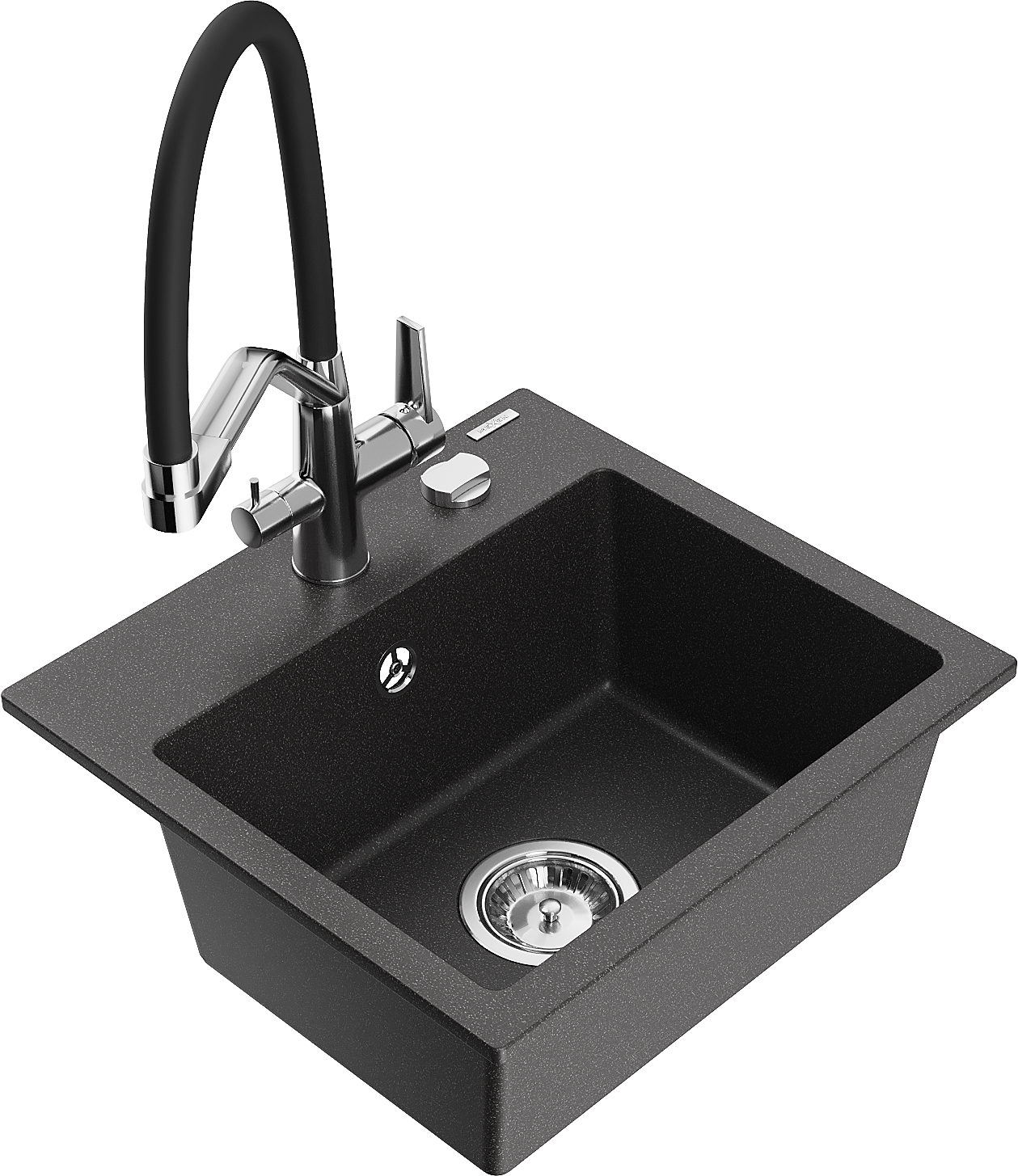 Mexen Milo évier en granit 1 bac avec robinet de cuisine Duo, noir moucheté - 6505-76-671701-07