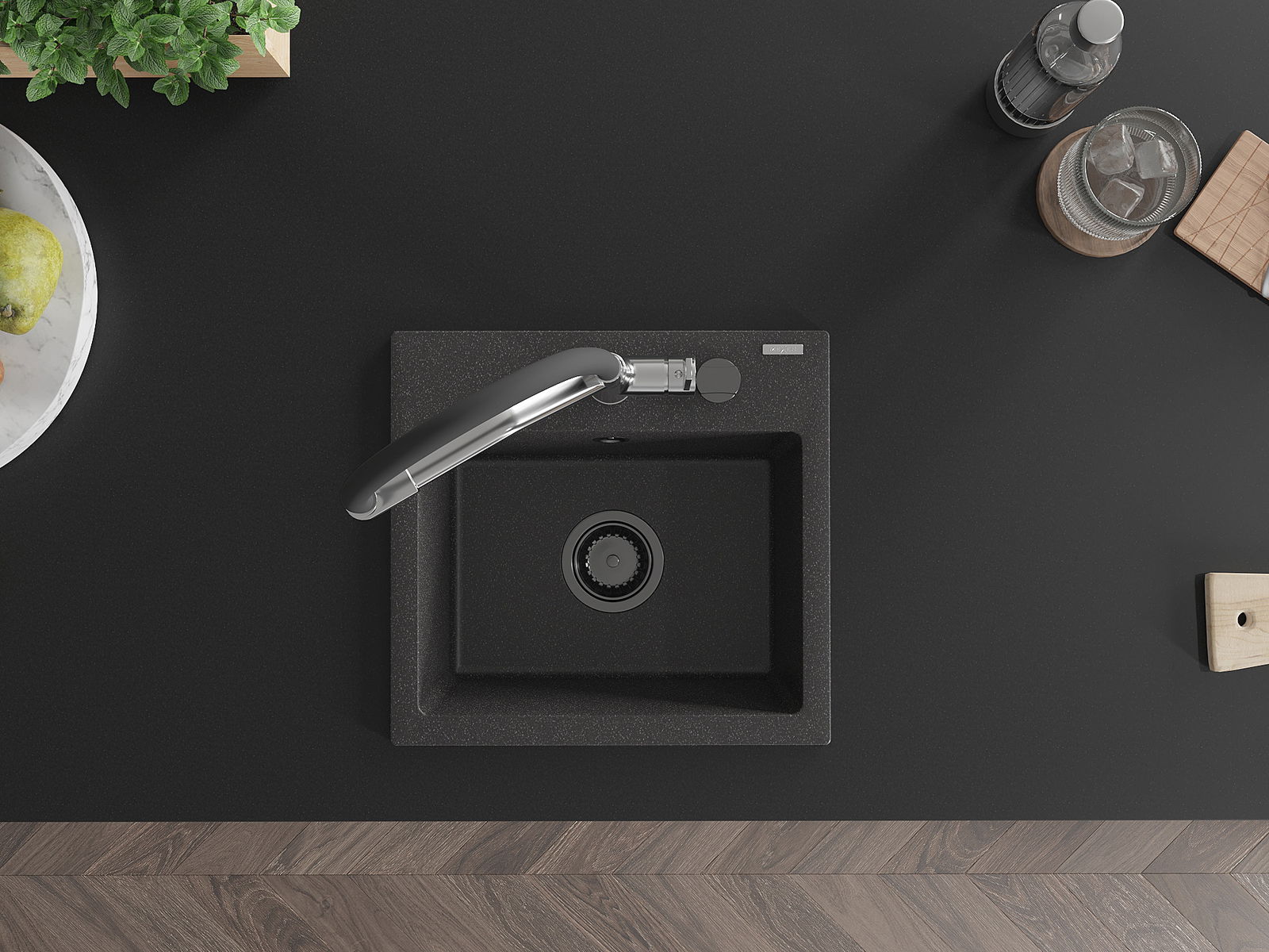 L'évier a un trou sous-meulé de 35 mm de diamètre à percer soi-même. Il peut être utilisé, entre autres, pour installer un distributeur de liquide, ce qui éliminera la présence de bouteilles en plastique dans la cuisine et lui donnera une finition élégante.