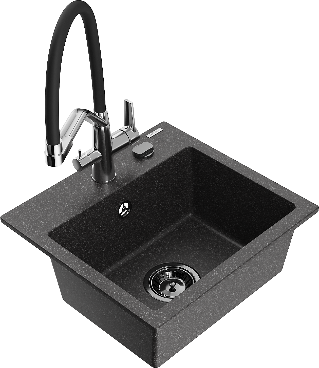 Mexen Milo évier en granit 1 bac avec mitigeur cuisine Duo, noir moucheté - 6505-76-671701-07-B