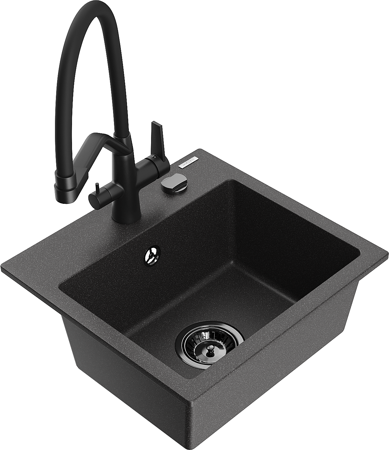 Mexen Milo évier en granit 1 bac avec robinet de cuisine Duo, noir tacheté - 6505-76-671701-70-B