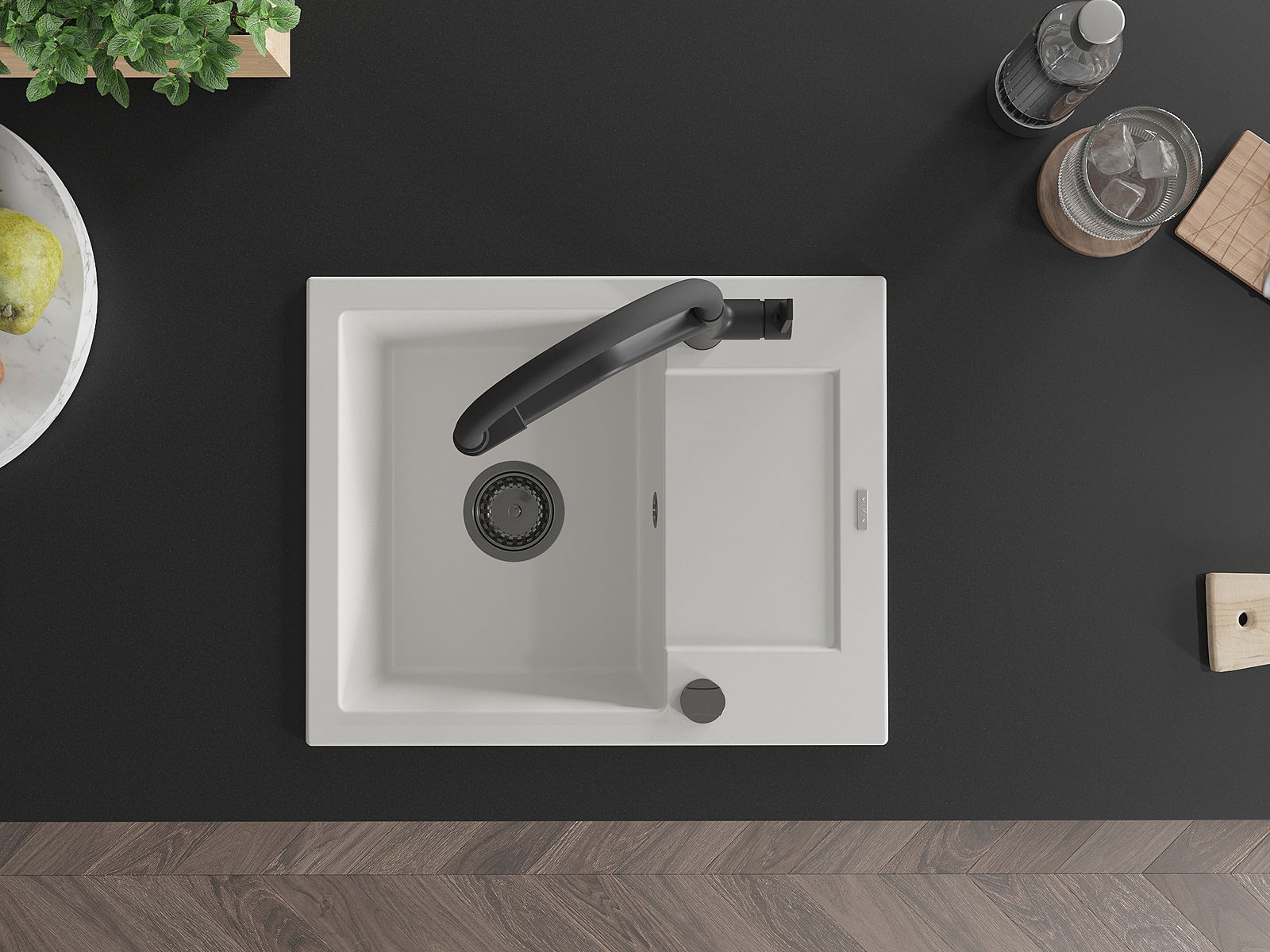 Mexen Enzo évier en granit 1 bac avec égouttoir et mitigeur Duo, blanc - 6506-20-671701-70-B