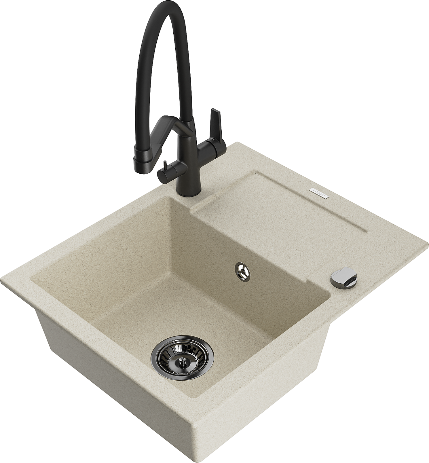 Mexen Enzo évier en granit 1 bac avec égouttoir et robinet de cuisine Duo, beige - 6506-69-671701-70-B