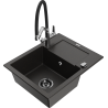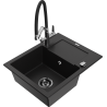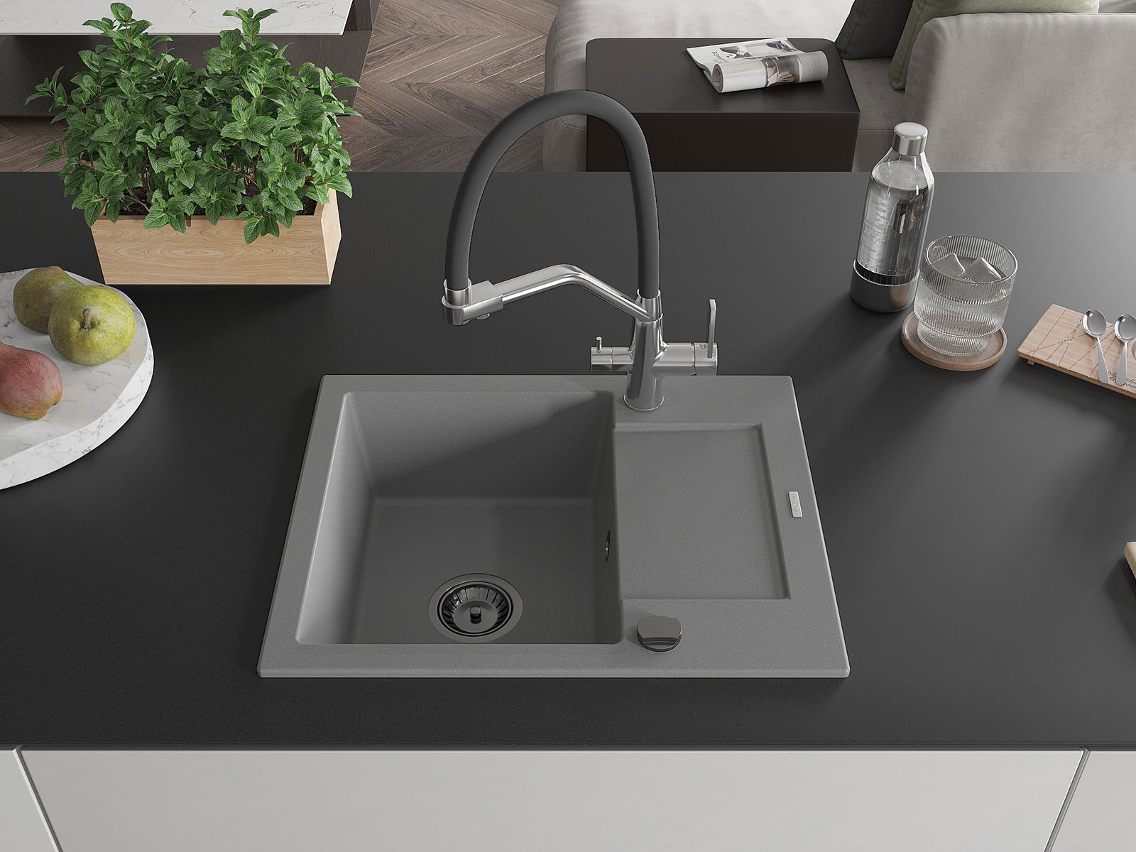 Mexen Enzo évier en granit 1 bac avec égouttoir et robinet de cuisine Duo, gris - 6506-71-671701-07-B