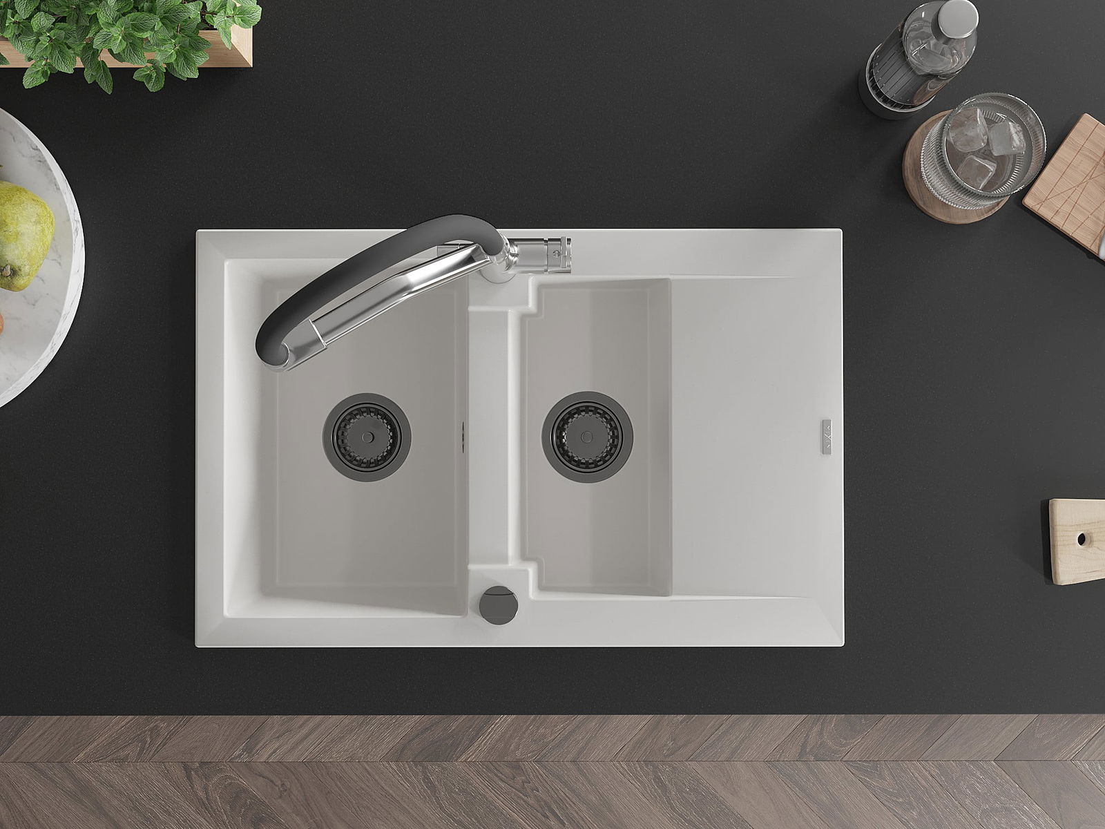 La surface de l'évier est très bien durcie, elle se distingue par une résistance exceptionnelle aux dommages mécaniques et aux rayures. Le matériau durable de fabrication permet de profiter de l'apparence de l'évier pendant de nombreuses années d'utilisation.