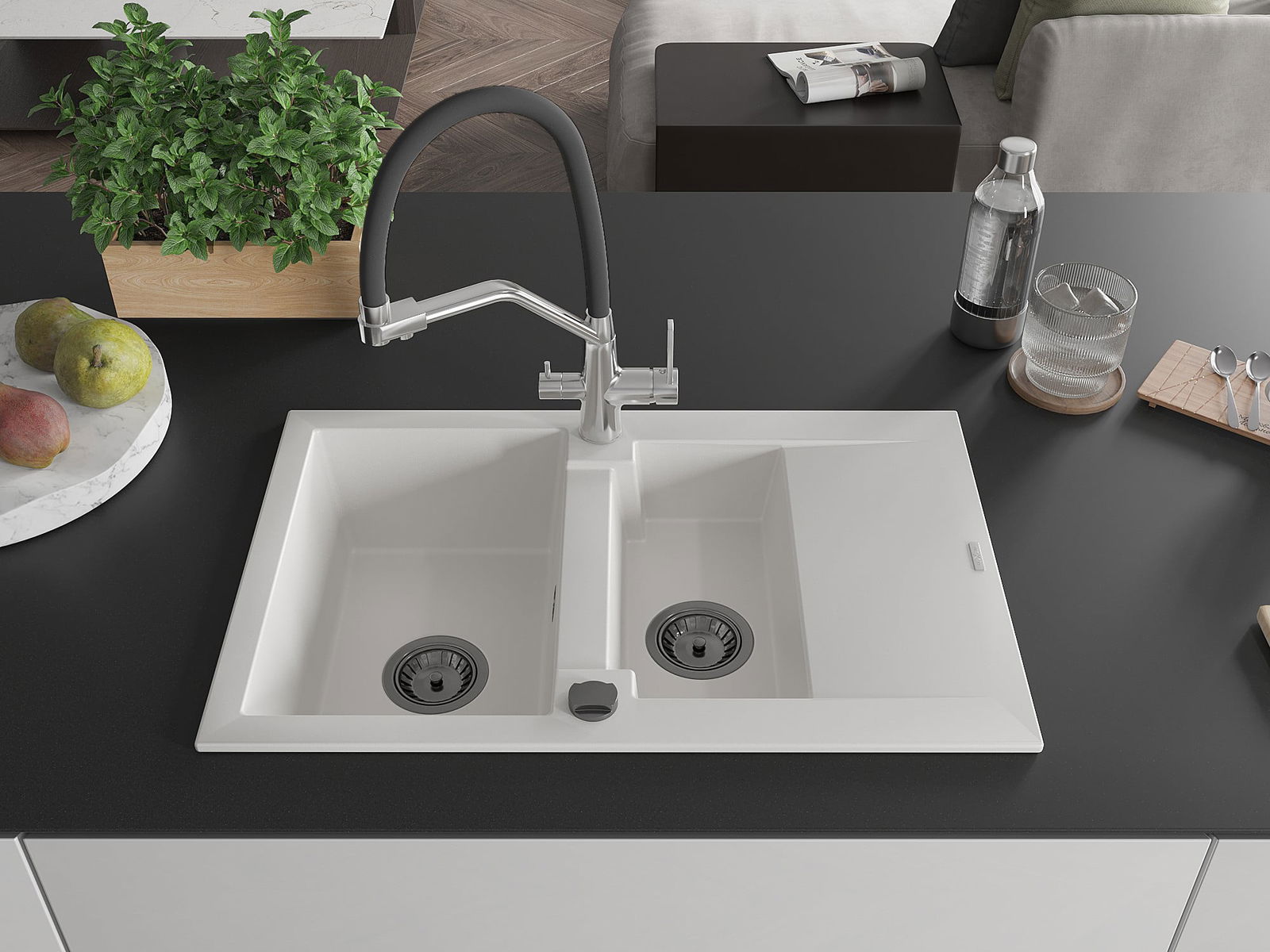L'évier se distingue par une résistance exceptionnelle aux hautes températures et à leurs changements soudains, ce qui évite toute déformation même sous l'effet prolongé de l'eau chaude.