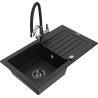 Mexen Pablo évier en granit 1-bac avec égouttoir et robinet de cuisine Duo, blanc - 6510-20-671701-07-B