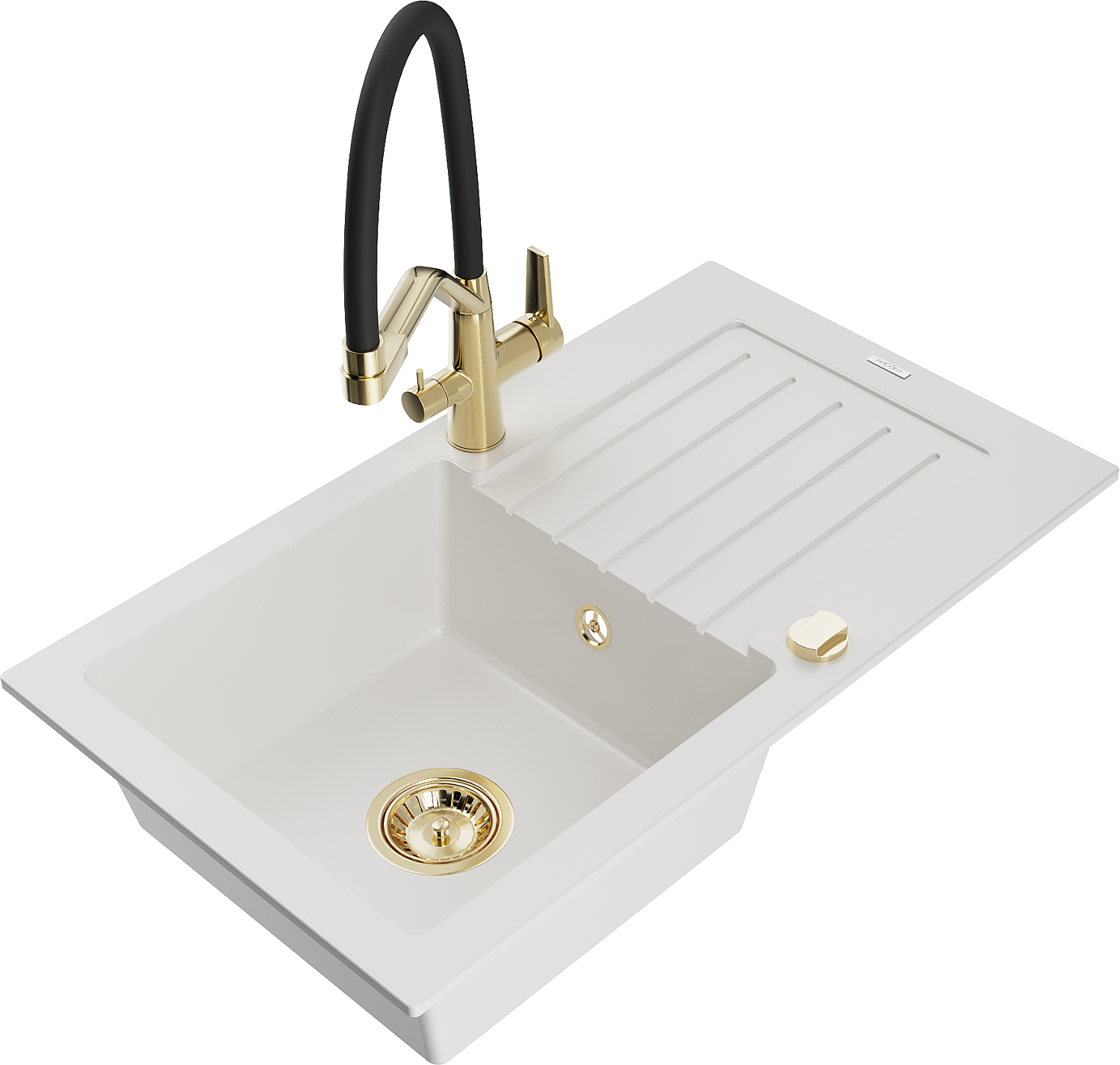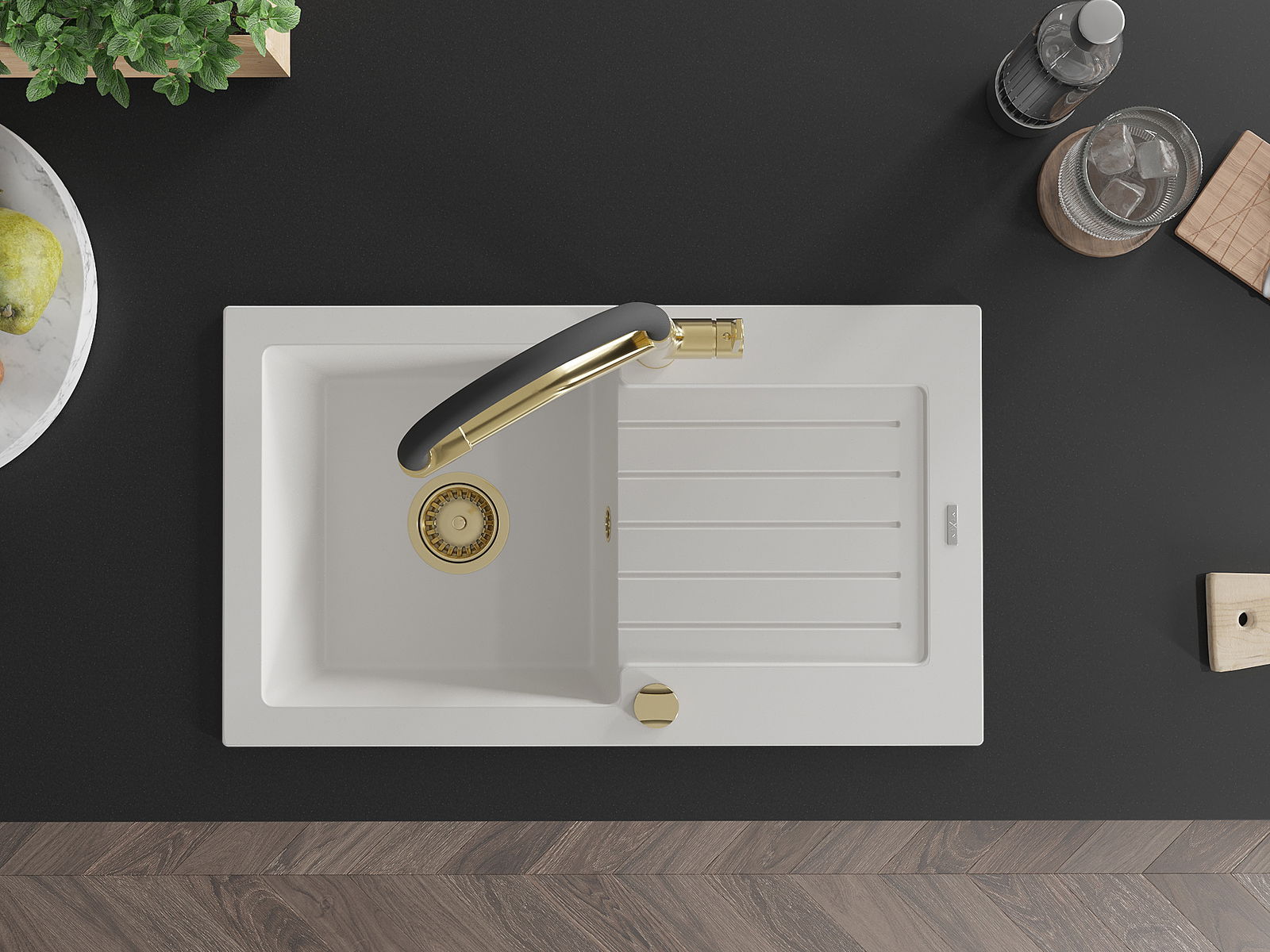 Mexen Pablo évier en granit 1 bac avec égouttoir et mitigeur cuisine Duo, blanc - 6510-20-671701-57-G