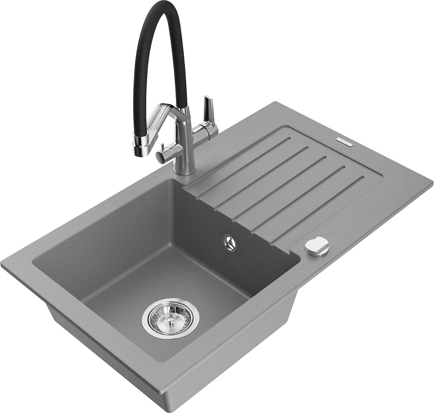 Mexen Pablo évier en granit 1 bac avec égouttoir et robinet de cuisine Duo, gris - 6510-71-671701-07