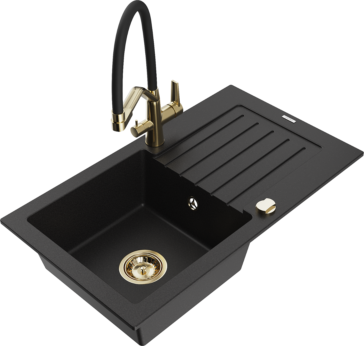 Mexen Pablo évier en granit 1 bac avec égouttoir et robinet de cuisine Duo, noir - 6510-77-671701-57-G