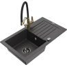 Mexen Pablo évier de cuisine en granit 1 bac avec égouttoir et robinet Duo, noir - 6510-77-671701-57-B