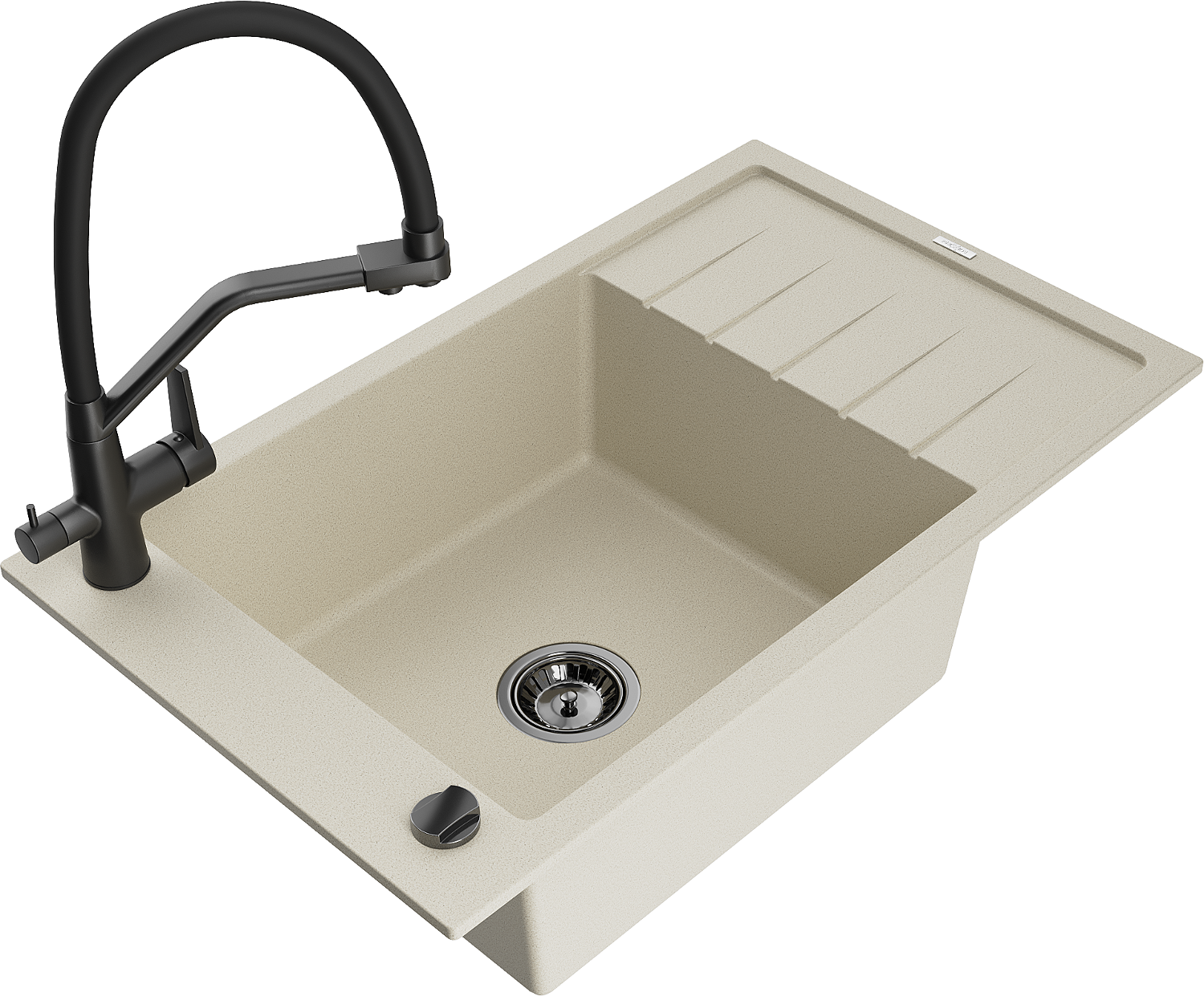 Mexen Elias évier de cuisine en granit 1 bac avec égouttoir et mitigeur Duo, beige - 6511-69-671701-70-B