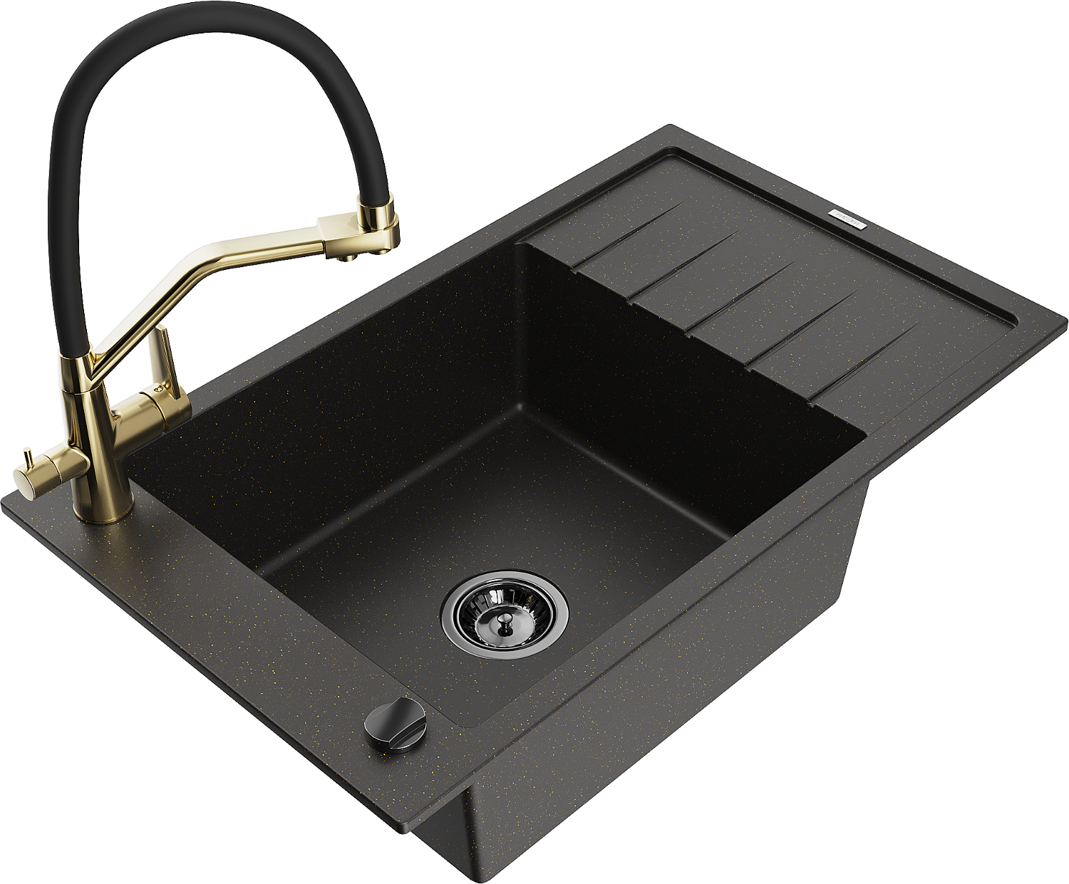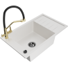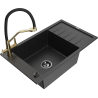 Mexen Elias évier en granit à 1 bac avec égouttoir et robinet de cuisine Duo, noir/or métallique - 6511-75-671701-57-B