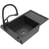 Mexen Elias évier en granit 1 bac avec égouttoir et mitigeur de cuisine Duo, noir/métallique doré - 6511-75-671701-70-B