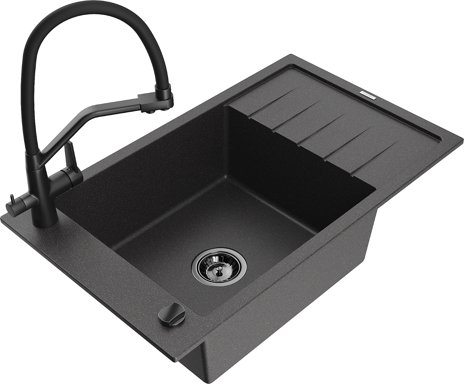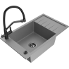 Mexen Elias évier en granit 1 bac avec égouttoir et robinet de cuisine Duo, noir moucheté - 6511-76-671701-70-B