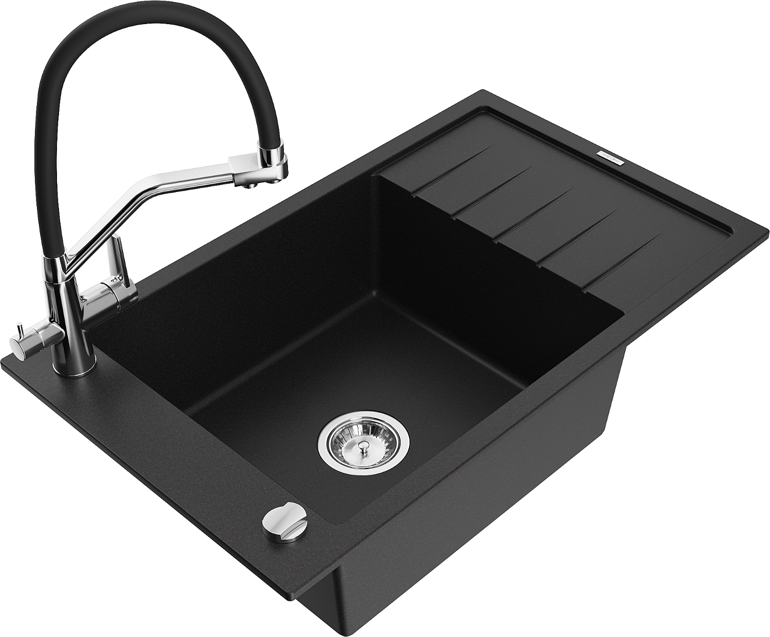 Mexen Elias évier en granit 1 bac avec égouttoir et robinet de cuisine Duo, noir - 6511-77-671701-07