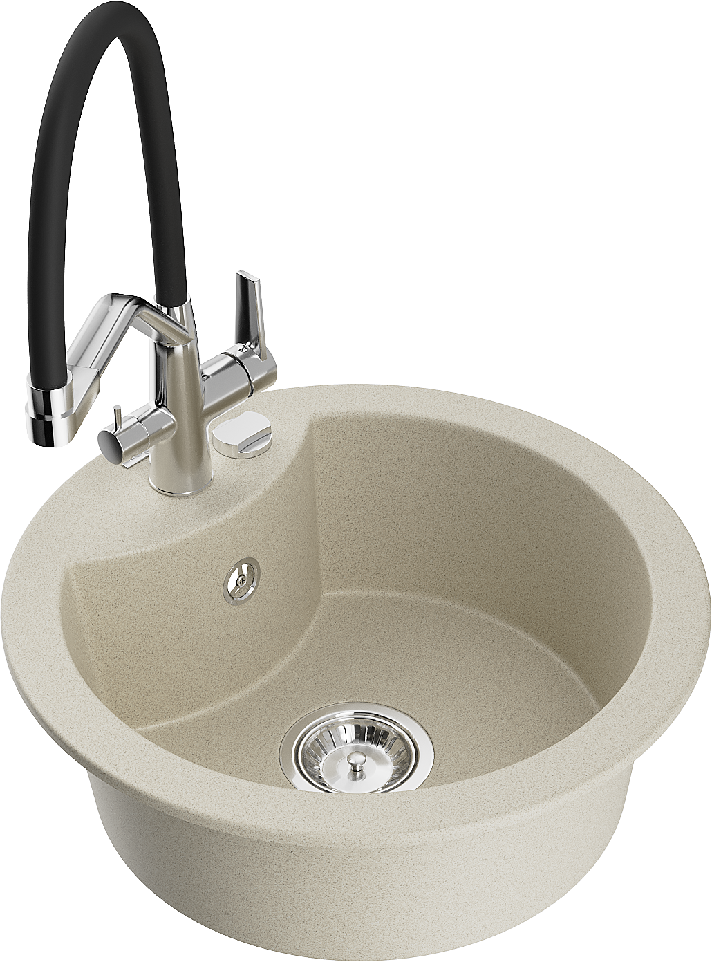 Mexen Diego évier en granit à 1 bac avec robinet de cuisine Duo, beige - 6512-69-671701-07