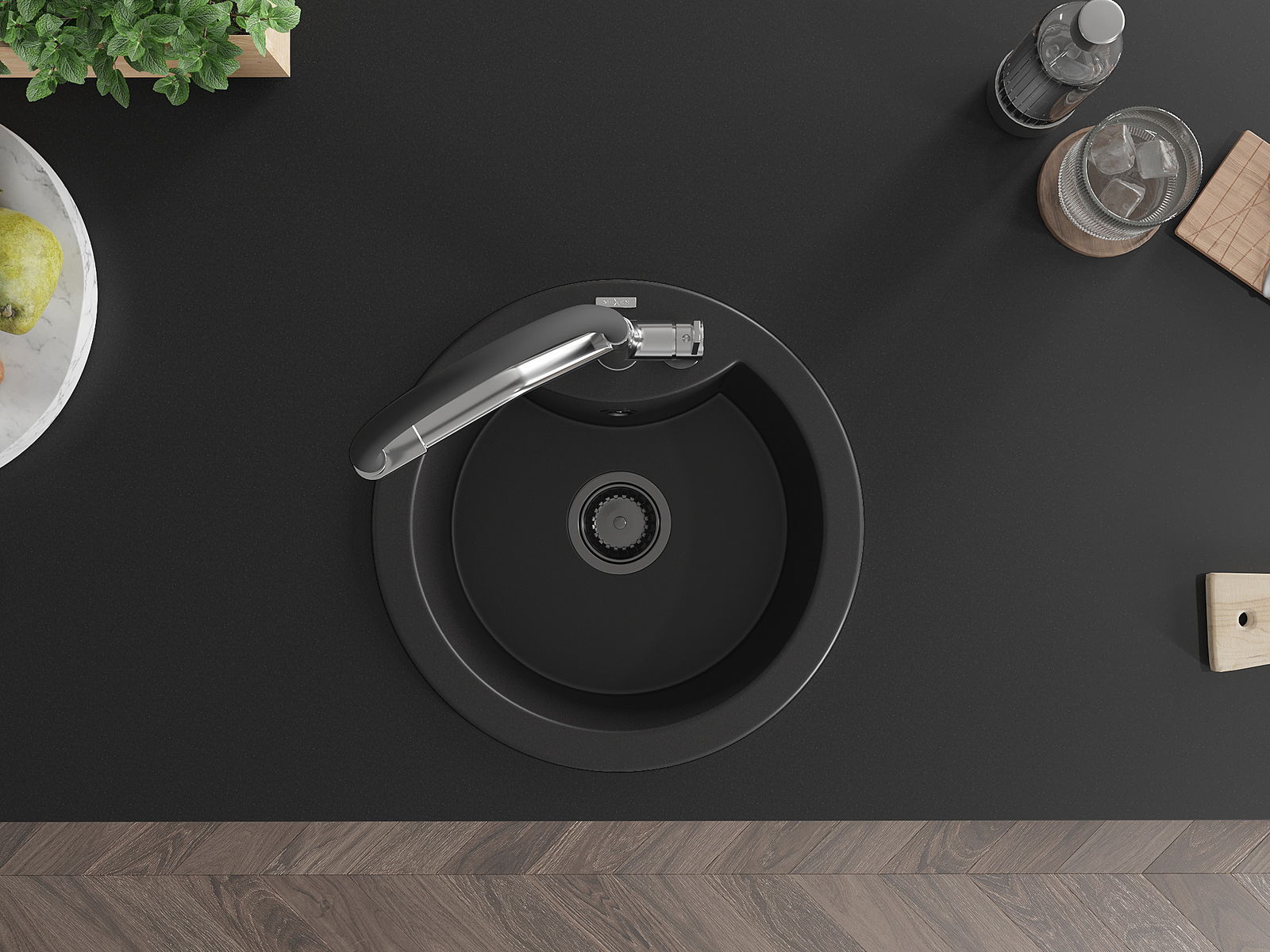 Mexen Diego évier en granit 1 bac avec mitigeur cuisine Duo, noir - 6512-77-671701-07-B