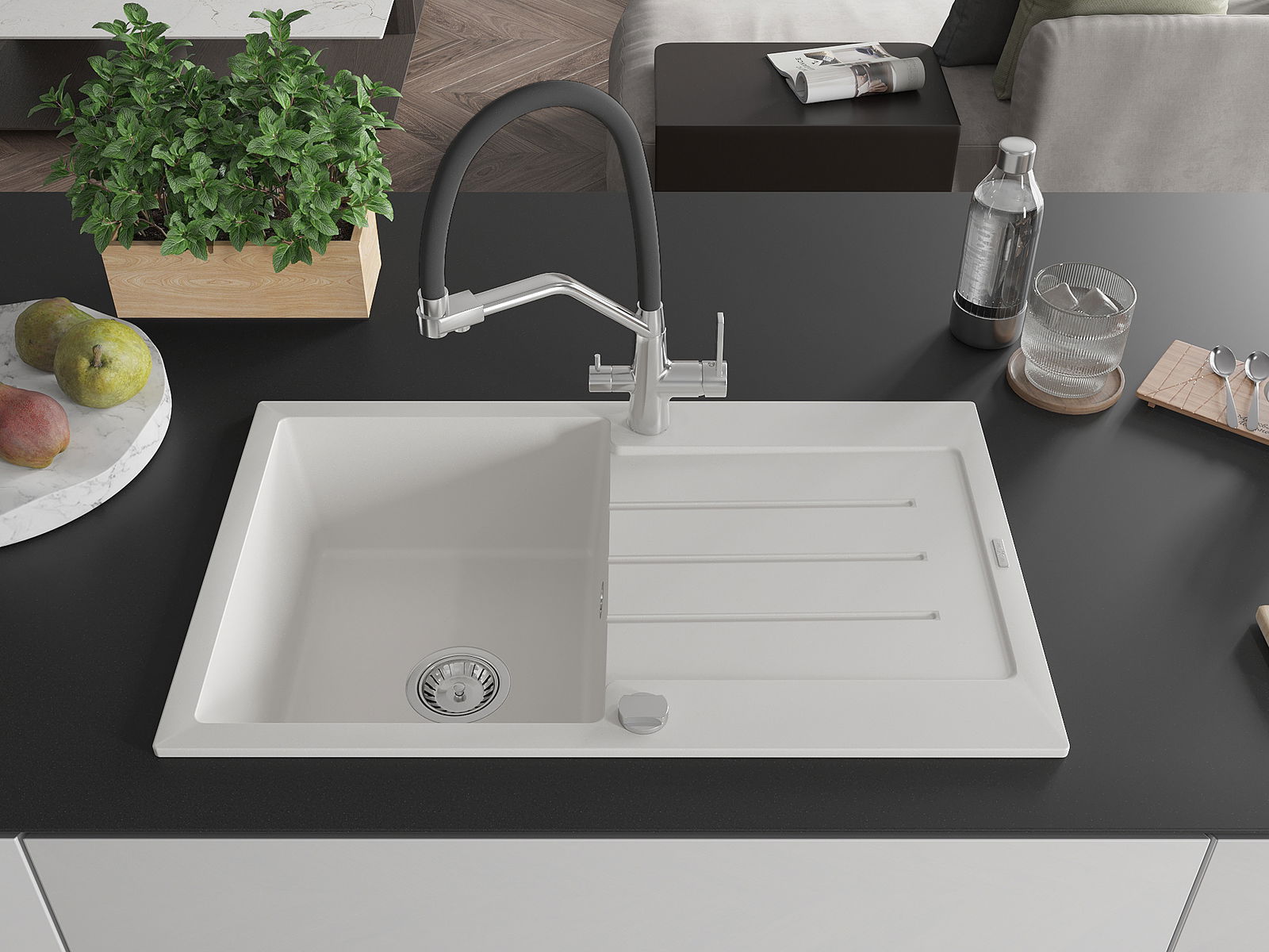 L'évier se distingue par une résistance exceptionnelle aux hautes températures et à leurs changements soudains, ce qui évite toute déformation même sous l'effet prolongé de l'eau chaude.