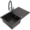 Mexen Bruno évier en granit 1 bac avec égouttoir et robinet de cuisine Duo, noir - 6513-77-671701-07-B