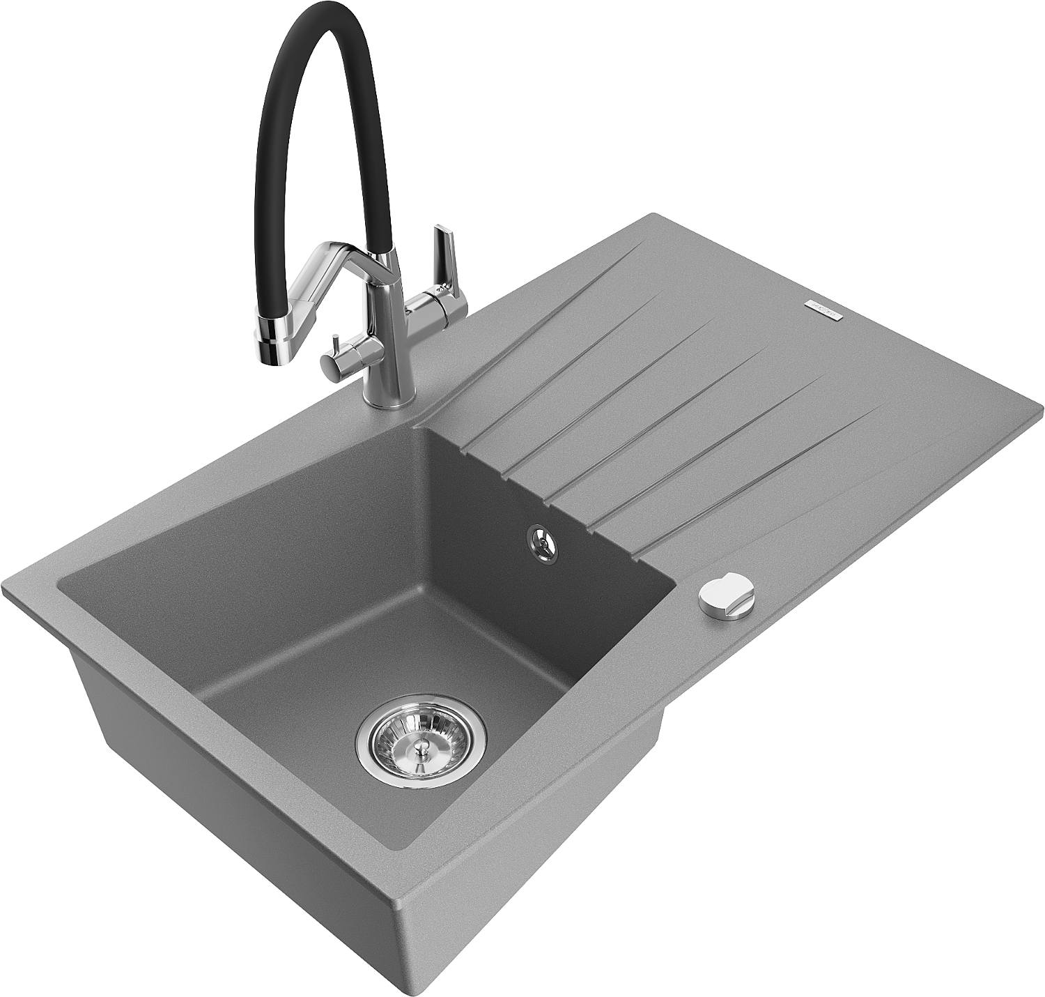 Mexen Cesar évier en granit 1 bassin avec égouttoir et robinet de cuisine Duo, gris - 6514-71-671701-07