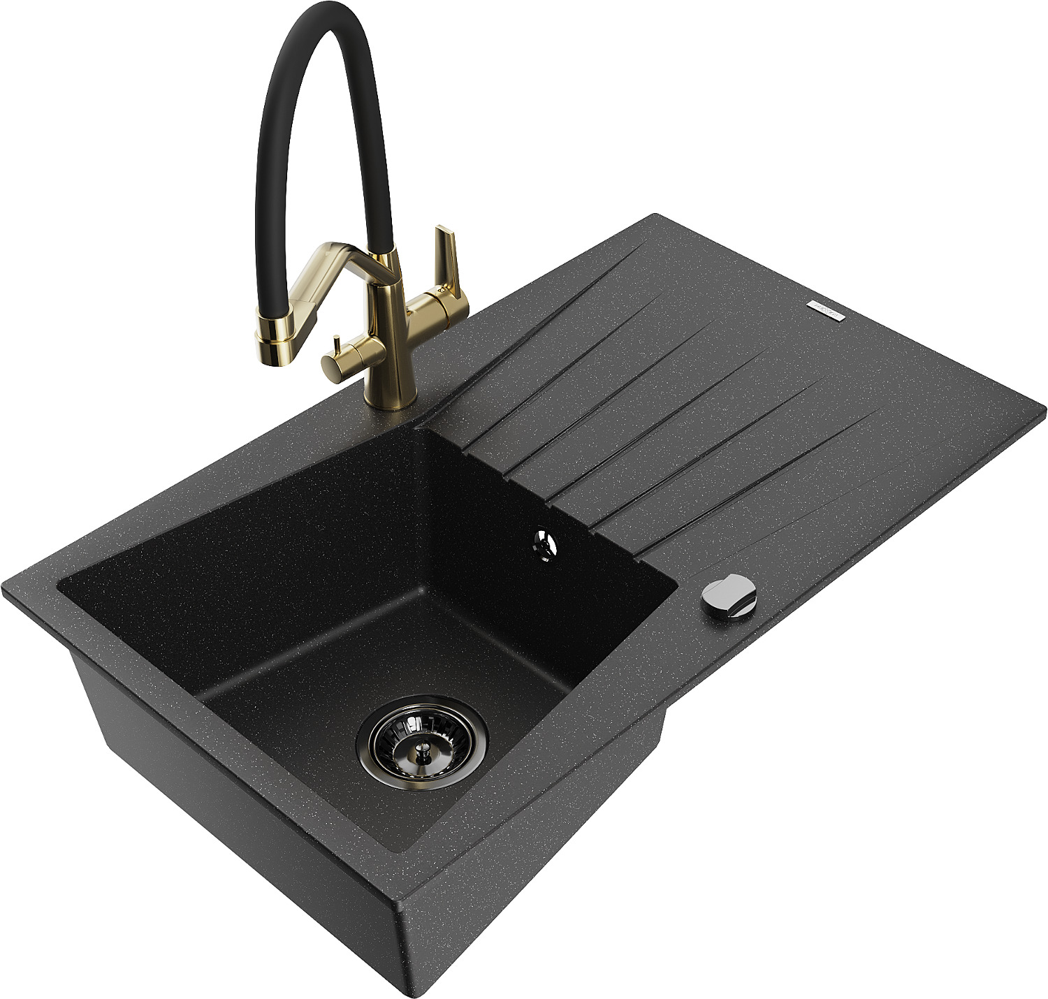 Mexen Cesar évier en granit 1 bol avec égouttoir et mitigeur de cuisine Duo, noir/argent métallisé - 6514-73-671701-57-B