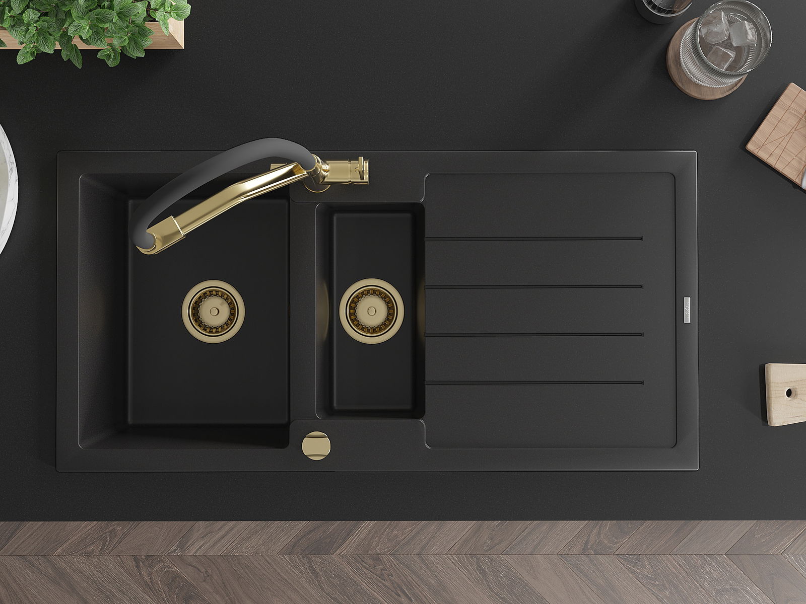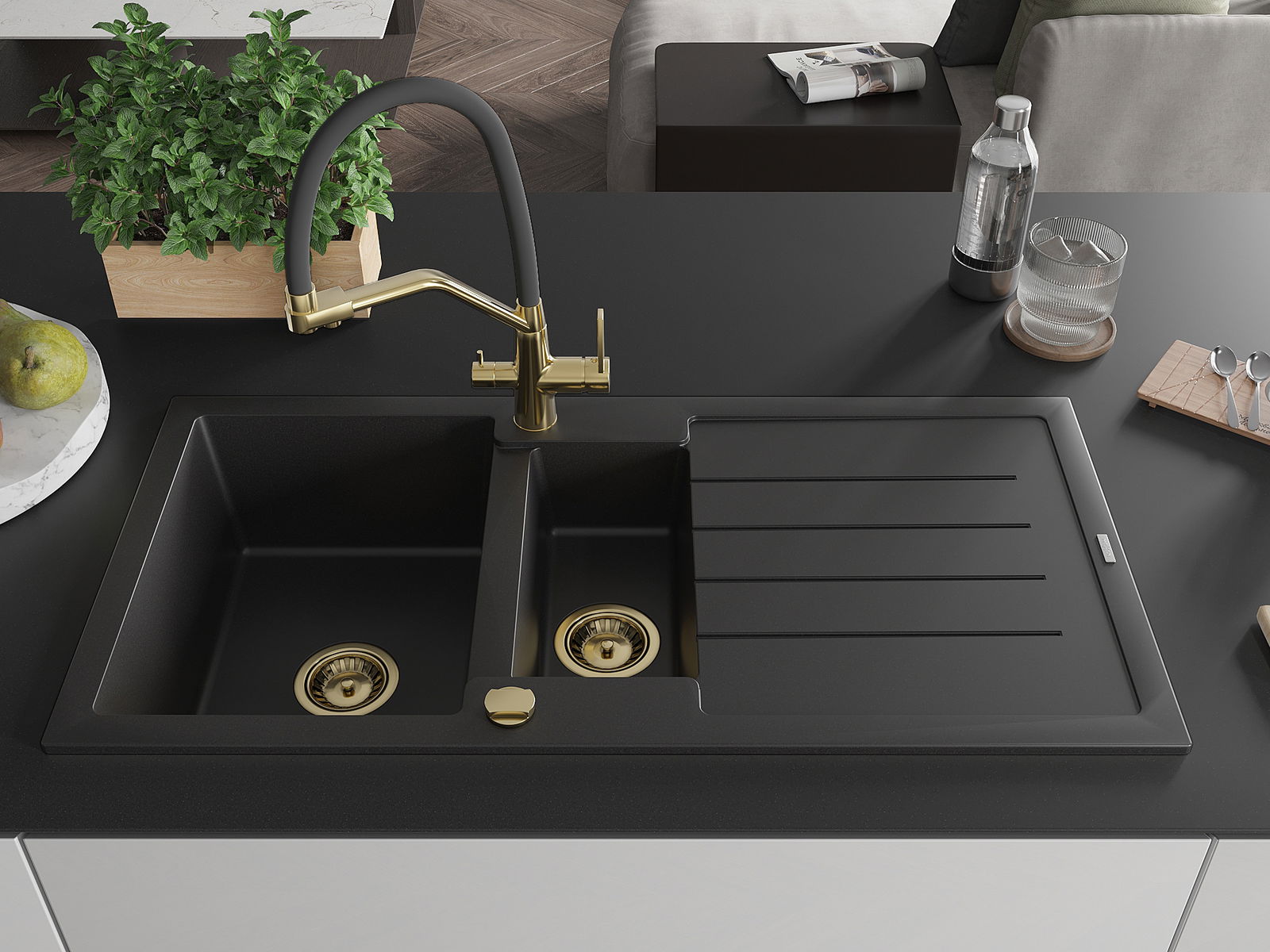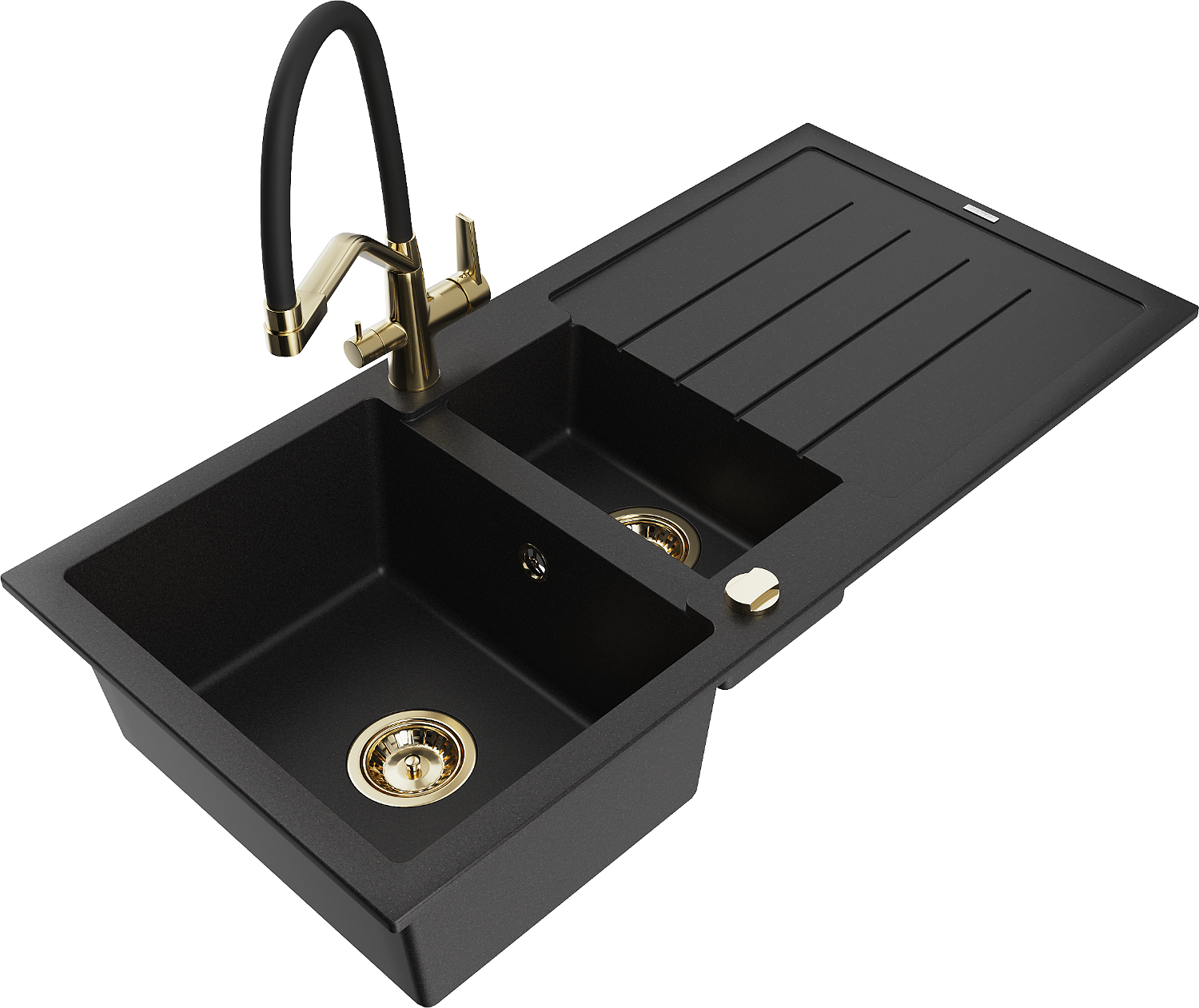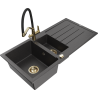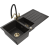 Mexen Andres évier en granit 1,5 bac avec égouttoir et robinet de cuisine Duo, noir - 6515-77-671701-57-G