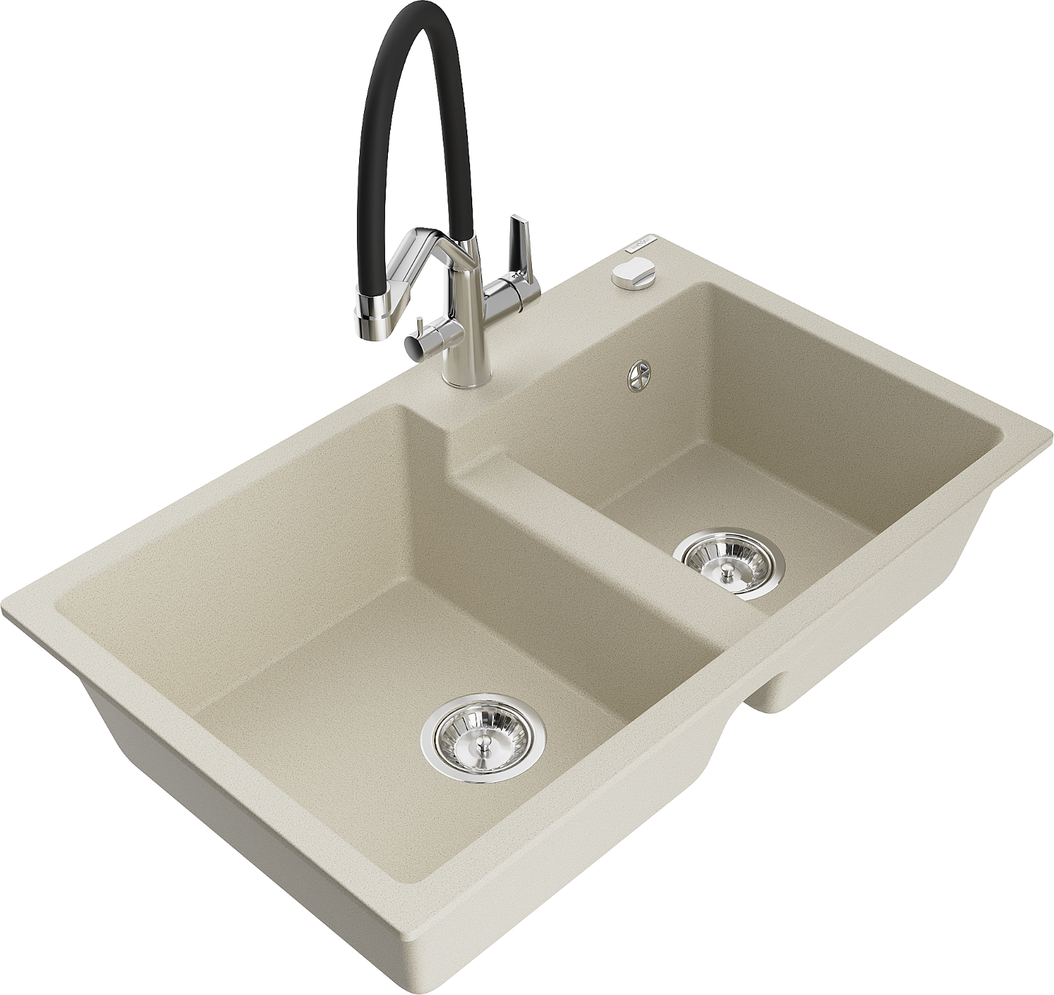 Mexen Tomas évier de cuisine en granit à 2 bassins avec robinet de cuisine Duo, beige - 6516-69-671701-07