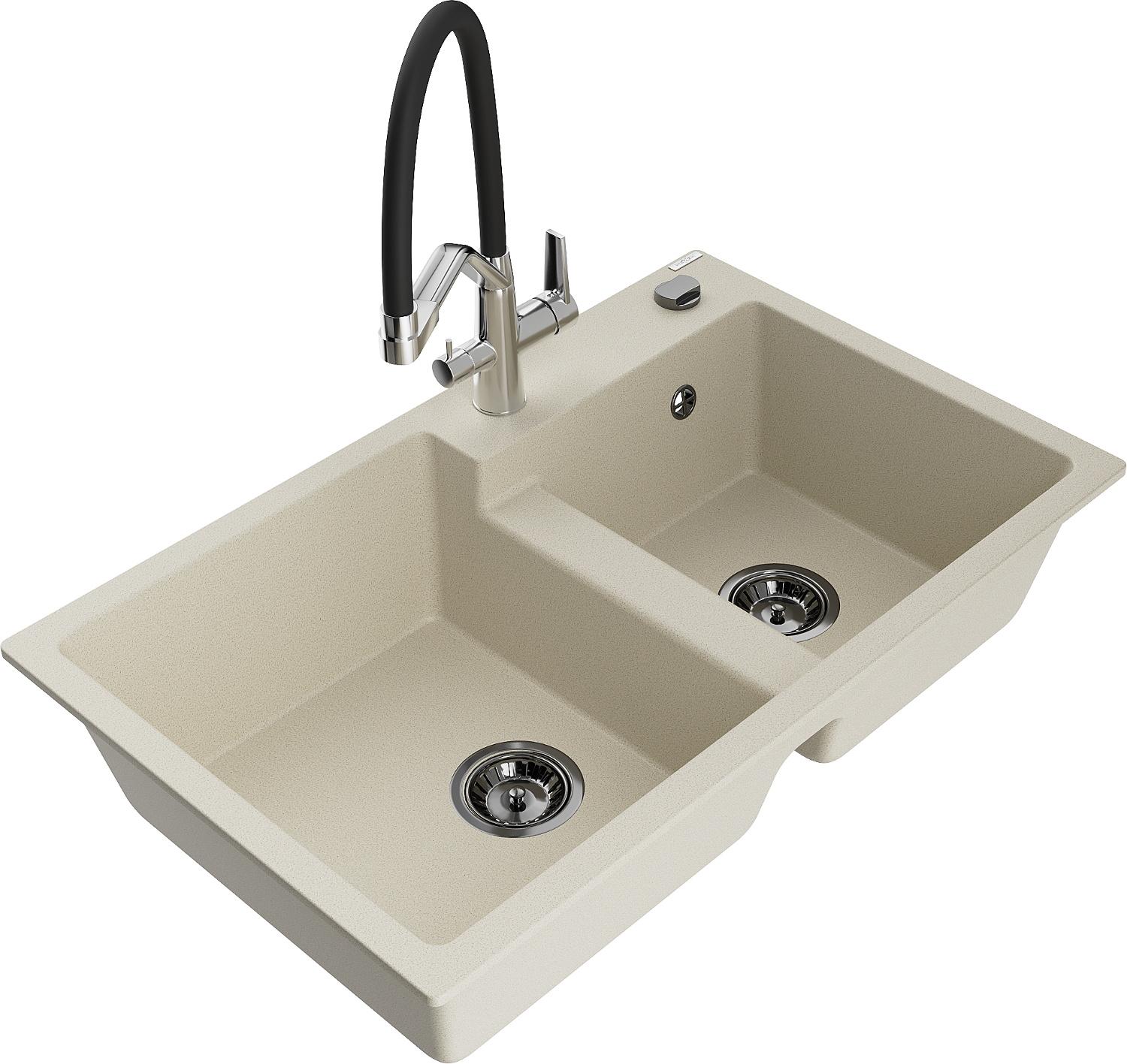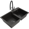 Mexen Tomas évier en granit à 2 bacs avec mitigeur de cuisine Duo, beige - 6516-69-671701-07-B