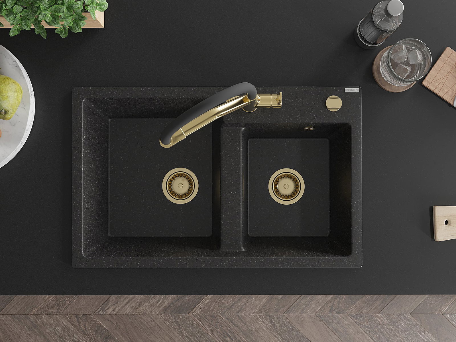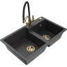 Mexen Tomas évier en granit 2 bacs avec robinet de cuisine Duo, noir/argent métallisé - 6516-73-671701-57-G