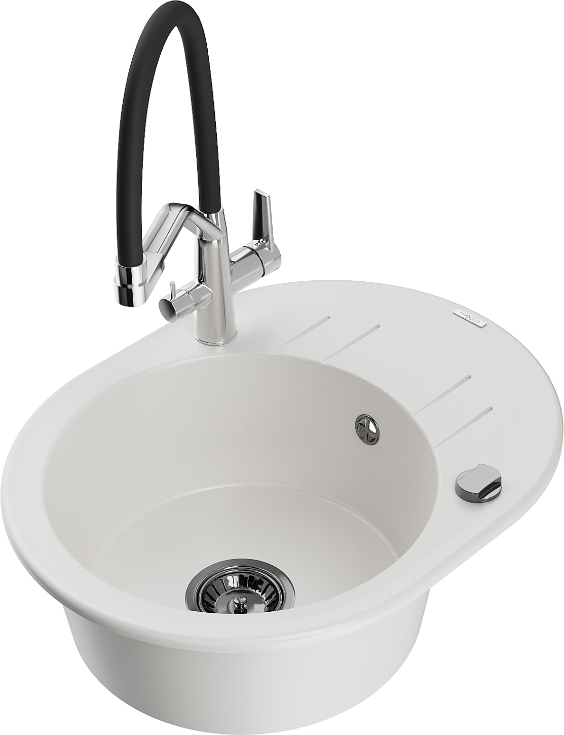 Mexen Kevin évier en granit à 1 bac avec robinet de cuisine Duo, blanc - 6517-20-671701-07-B
