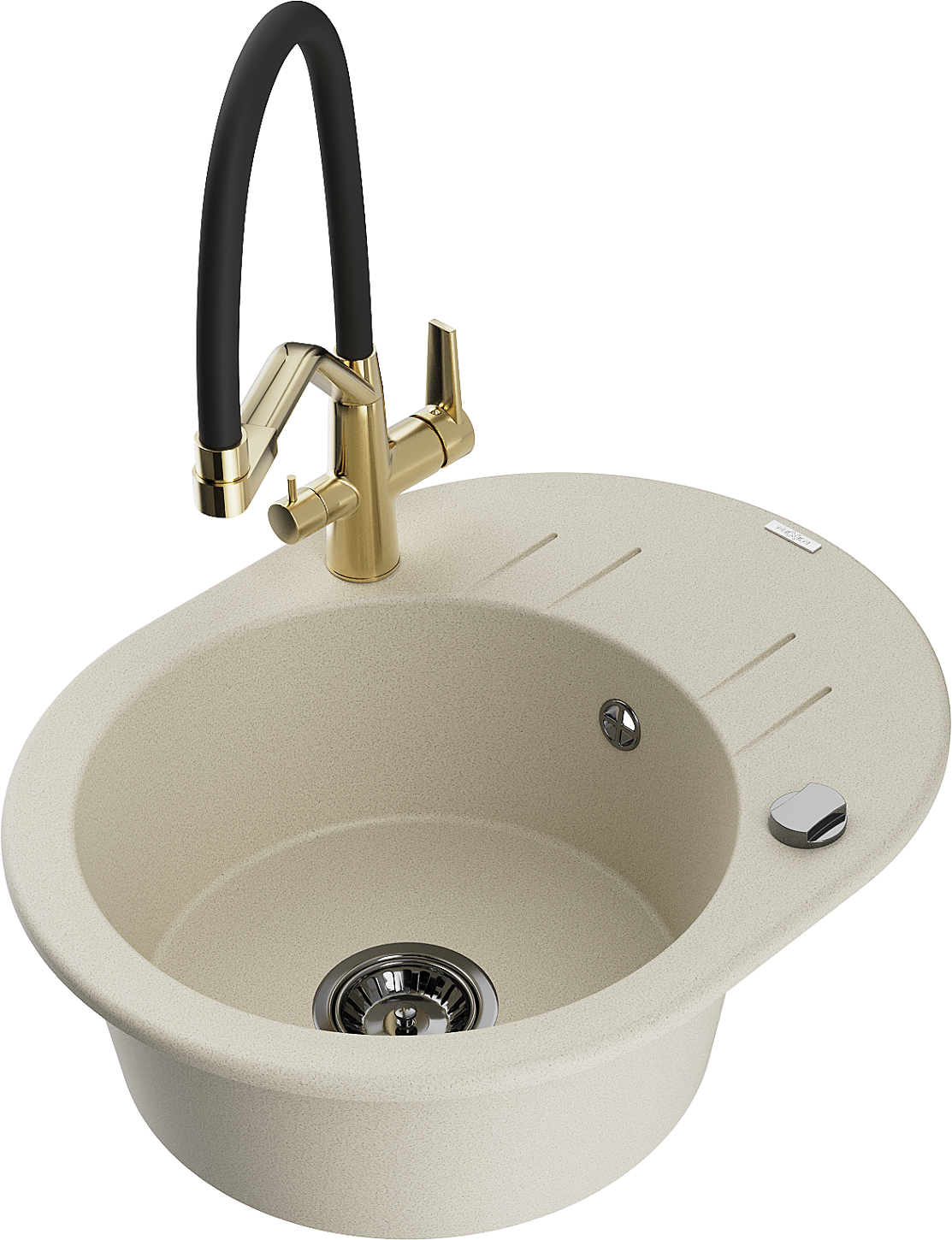 Mexen Kevin évier en granit 1 bac avec robinet de cuisine Duo, beige - 6517-69-671701-57-B
