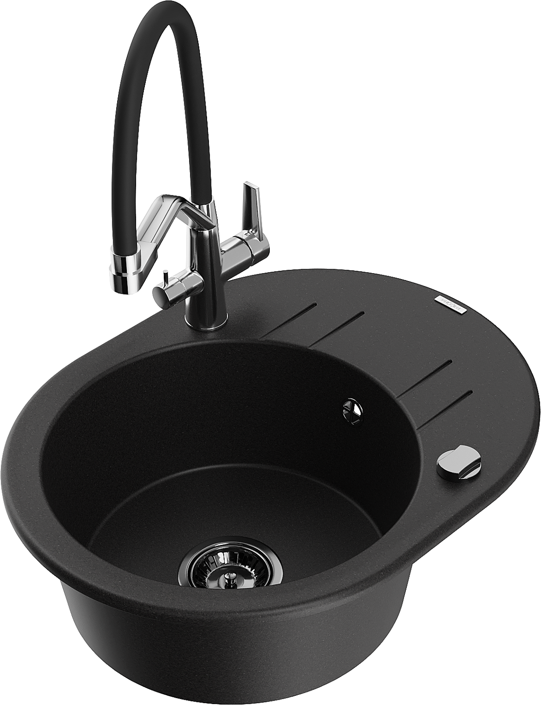 Mexen Kevin évier en granit à 1 bac avec robinet de cuisine Duo, noir - 6517-77-671701-07-B