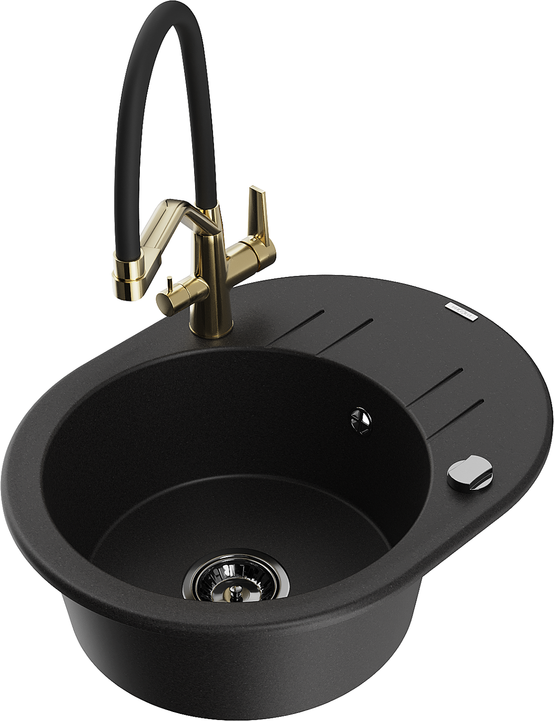 Mexen Kevin évier en granit 1 bac avec robinet de cuisine Duo, noir - 6517-77-671701-57-B