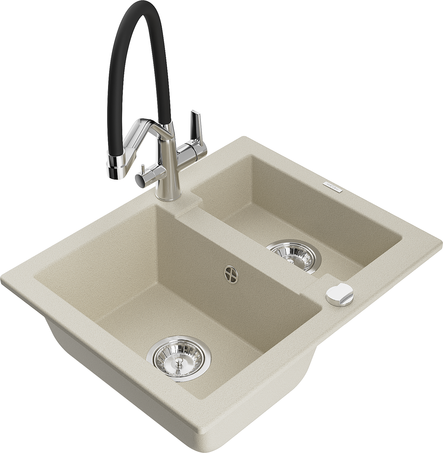 Mexen Carlos évier en granit 1,5 bac avec robinet de cuisine Duo, beige - 6518-69-671701-07
