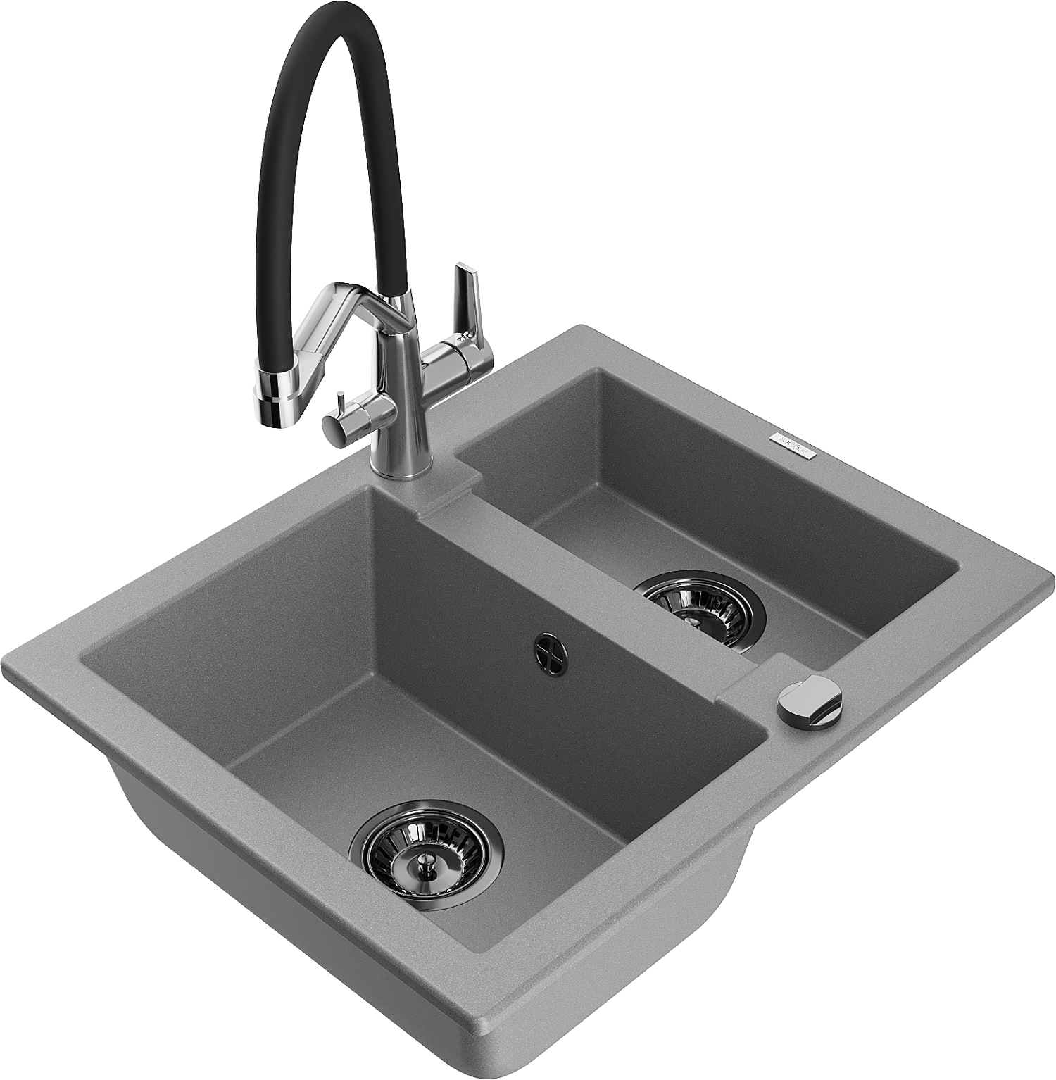 Mexen Carlos évier en granit 1,5 bac avec robinet de cuisine Duo, gris - 6518-71-671701-07-B
