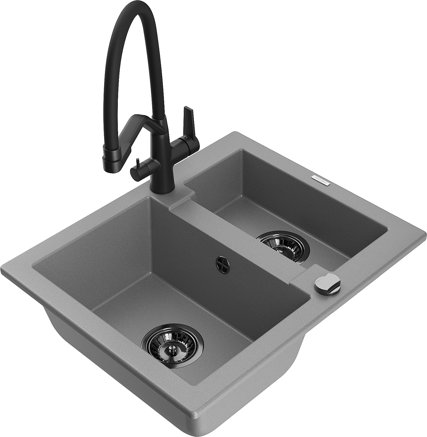 Mexen Carlos évier en granit 1,5-bac avec robinet de cuisine Duo, gris - 6518-71-671701-70-B