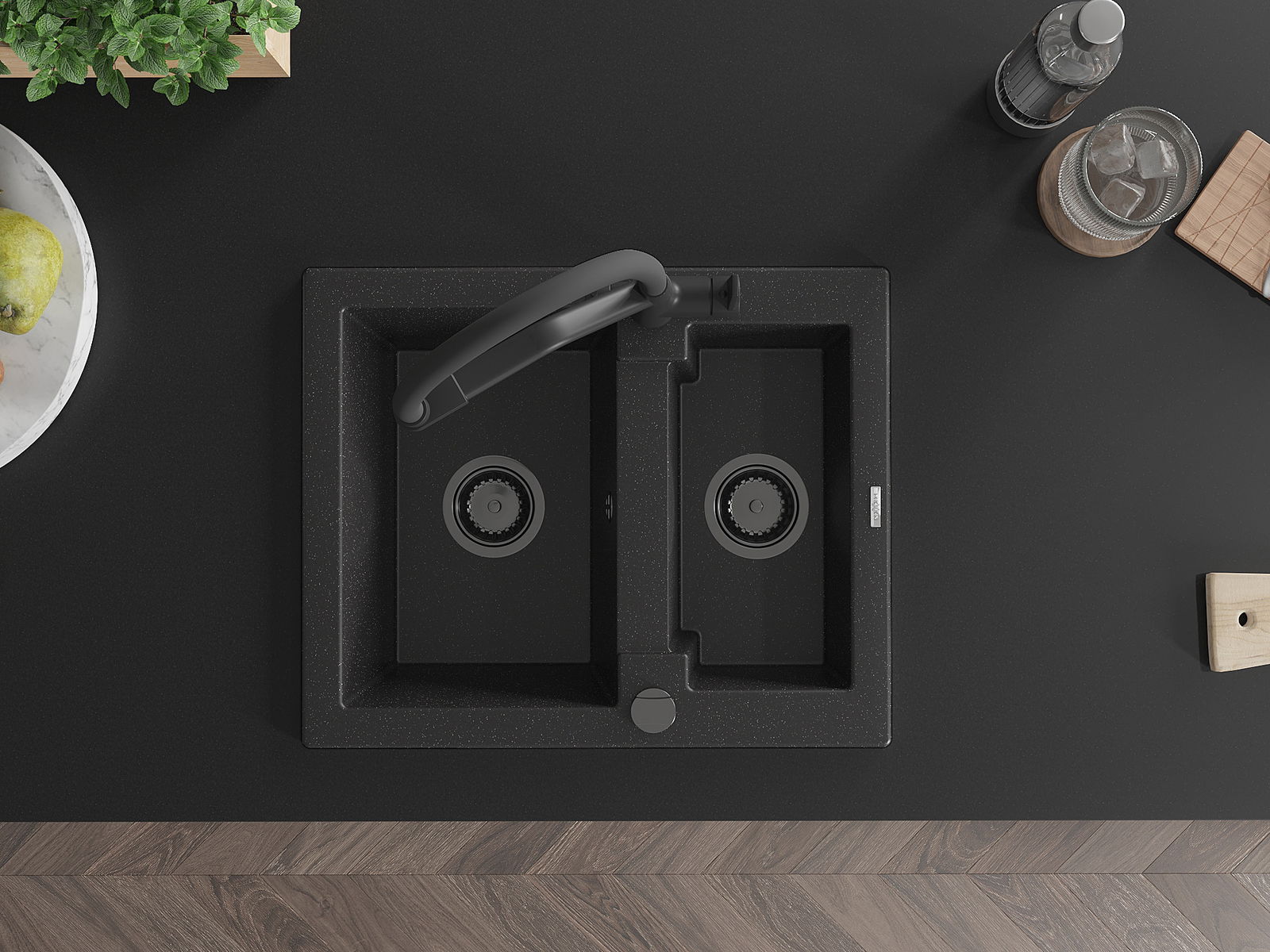 Mexen Carlos évier en granit 1,5 bac avec robinet de cuisine Duo, noir/métallique argenté - 6518-73-671701-70-B