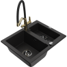 Mexen Carlos évier en granit 1,5 cuves avec robinet de cuisine Duo, noir/doré métallisé - 6518-75-671701-57-B