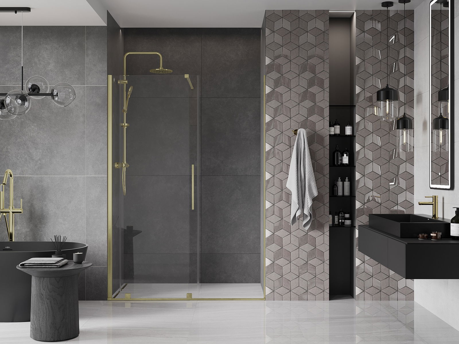 Mexen Velar portes de douche coulissantes 160 cm, transparentes, or brossé - 871-160-000-01-55