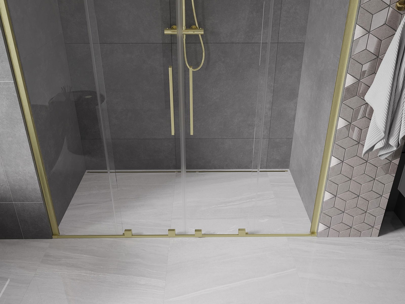 Mexen Velar Duo porte de douche coulissante 180 cm, transparent, or brossé - 871-180-000-02-55